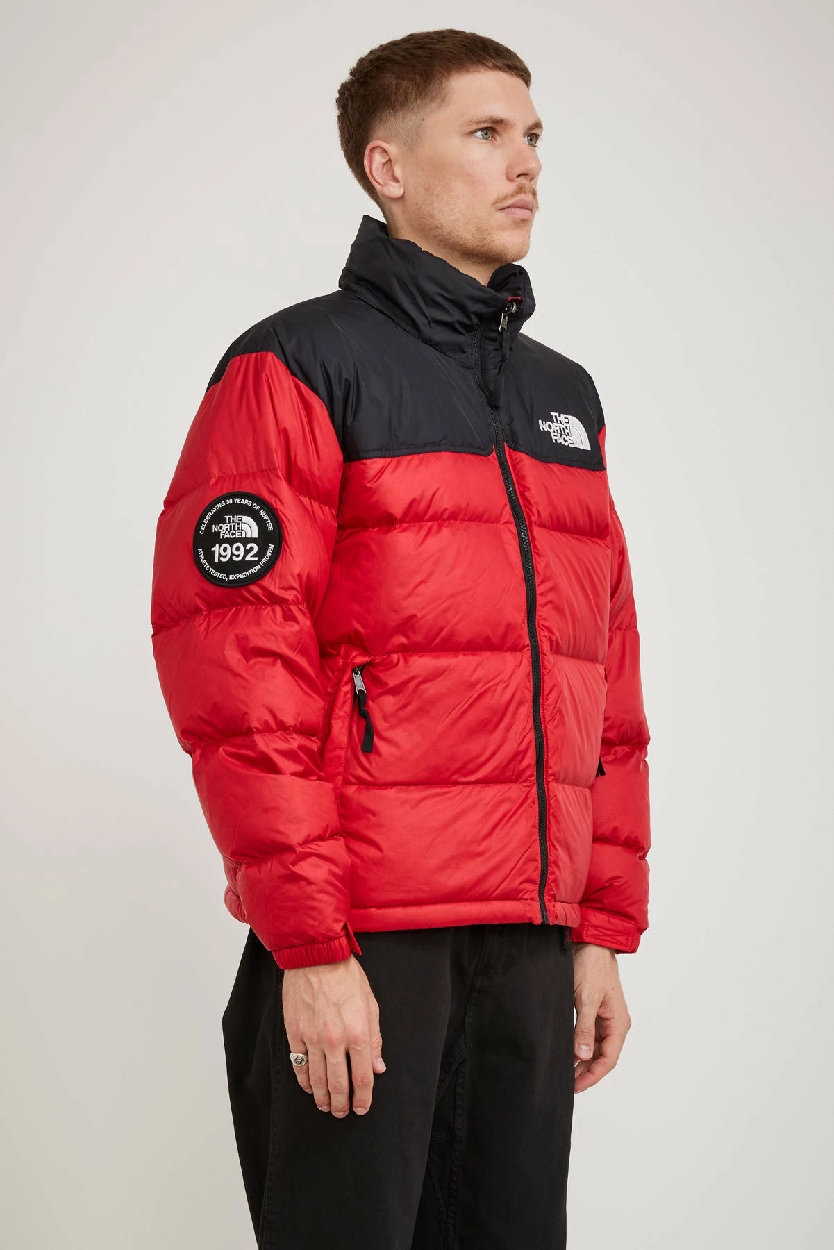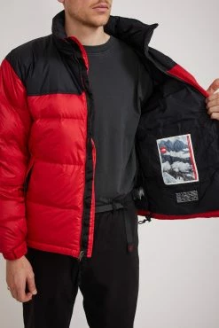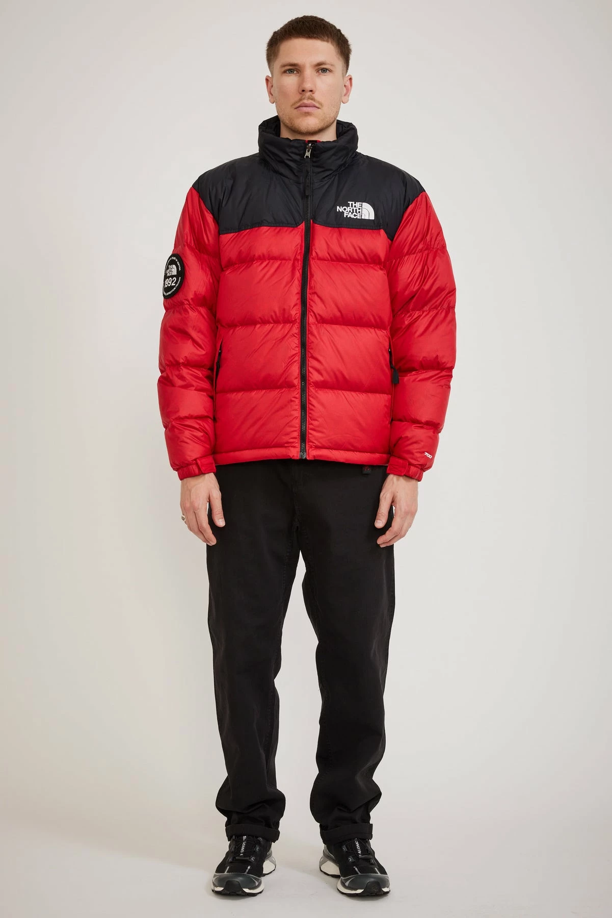 The 1996 Retro Nuptse Jacket by The North Face is crafted from a durable yet lightweight rip stock nylon outer filled with 700 fill goose down. Oversized baffles create a boxy silhouette, but the vest remains easily compressible, packing down into its own pocket. Features a durable water resistant coating, an adjustable hood that packs into the collar, diagonal zip hand pockets and embroidered chest logo.