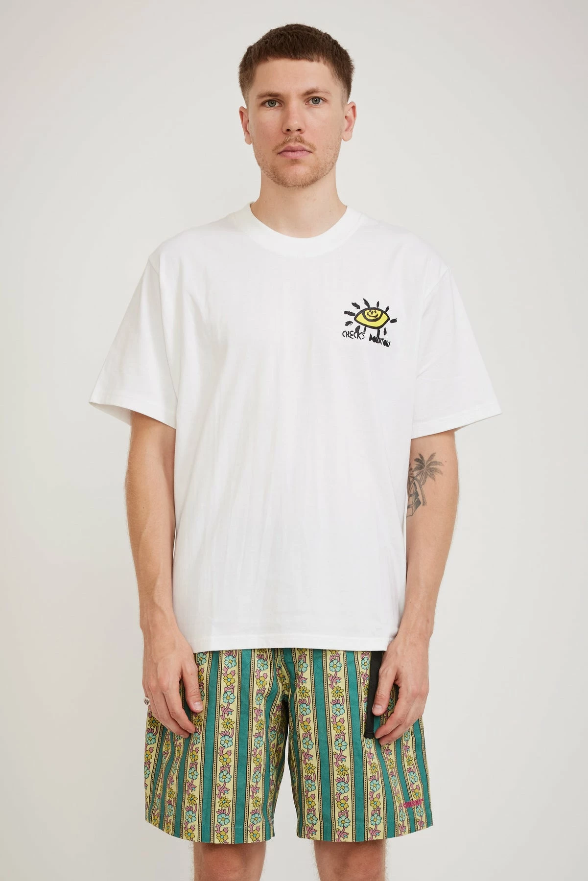All about love for the locals, this graphic tee from Checks is crafted from a heavy-weight cotton with an oversized fit, loose and easy for summer.