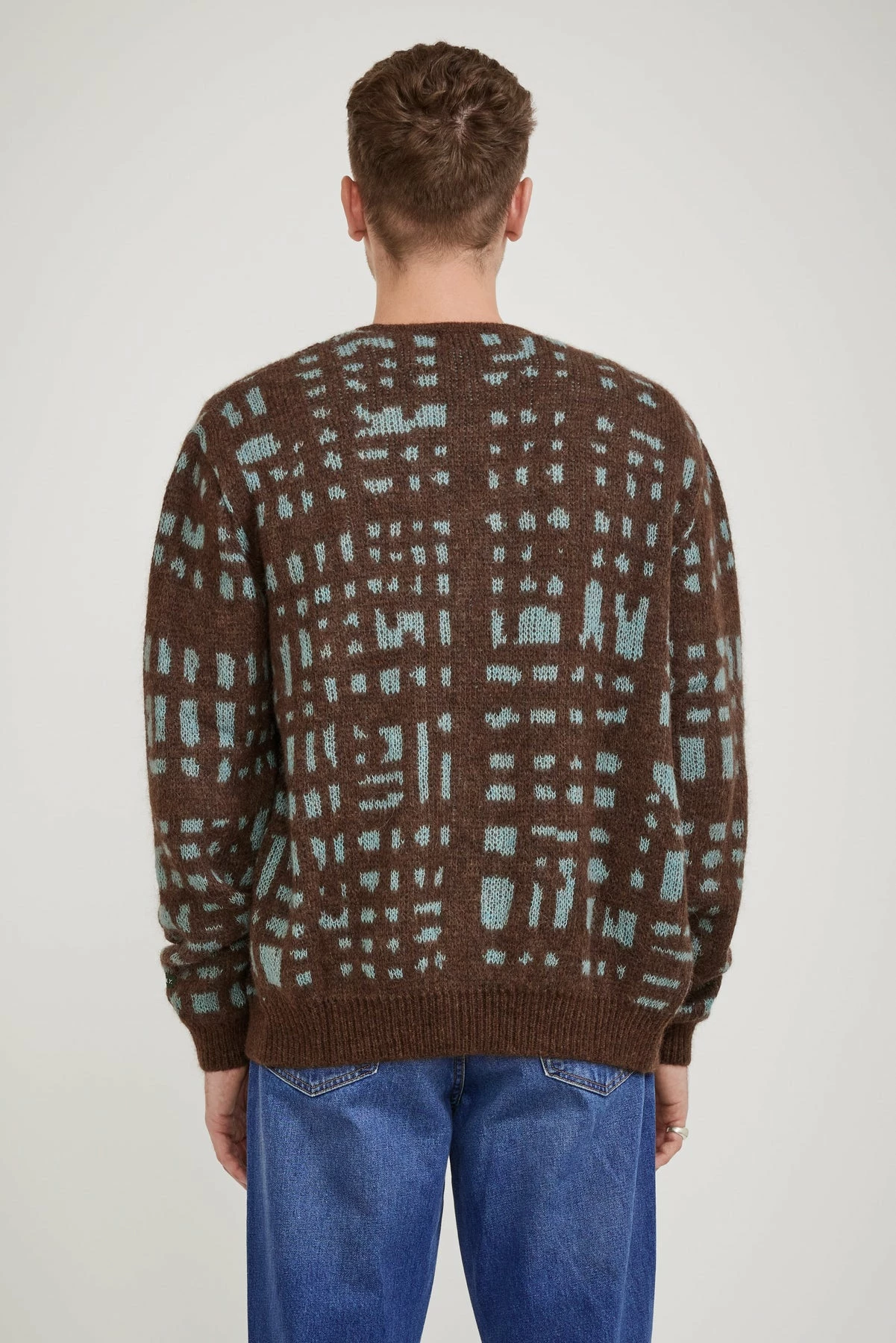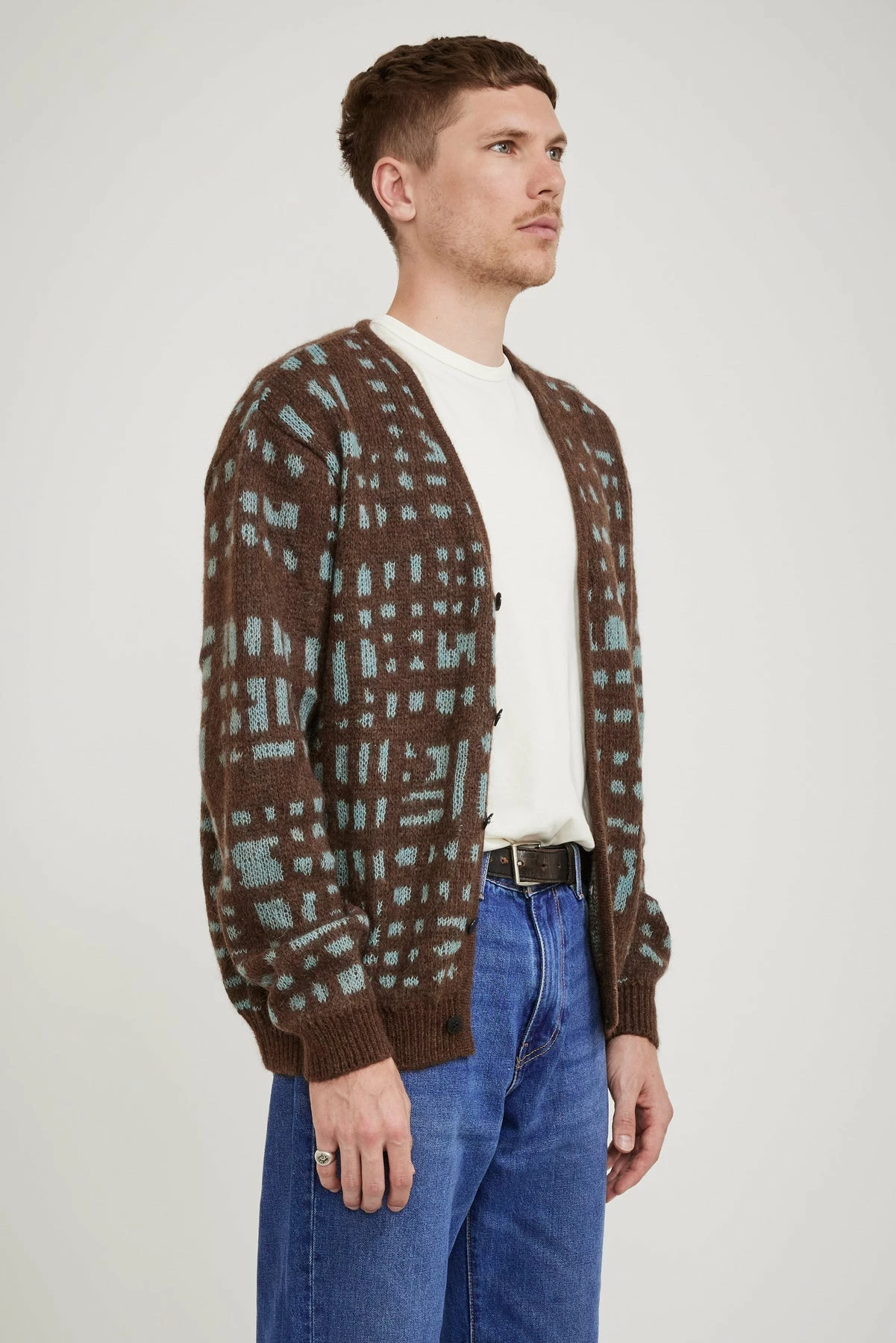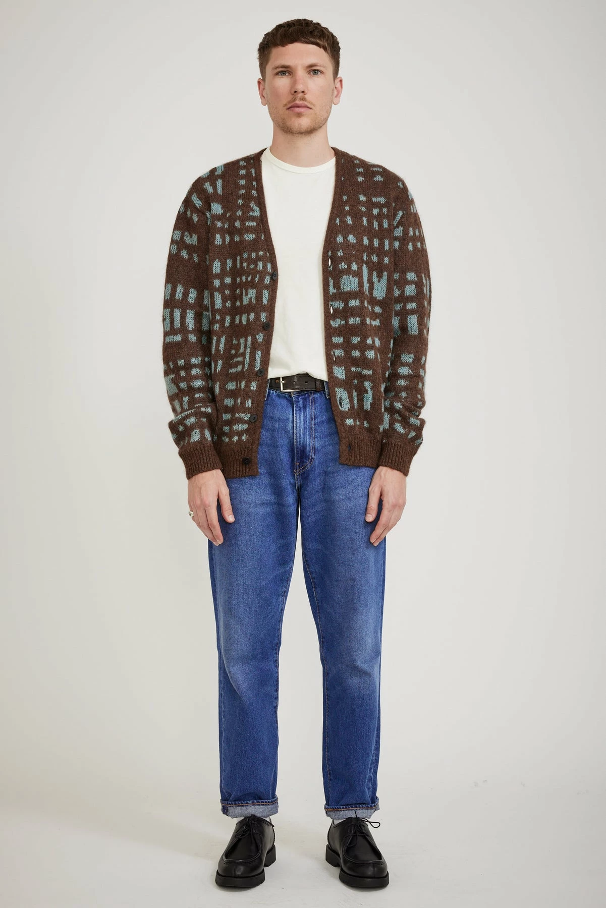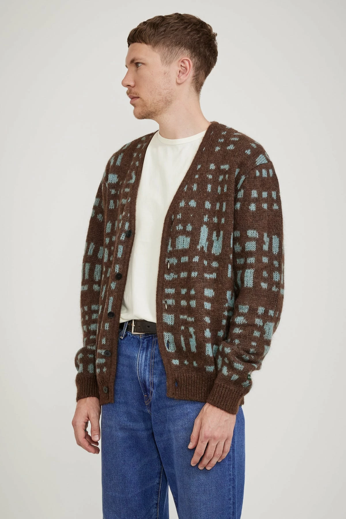 Crafted from an Italian Alpaca wool blend the Brushstroke Cardigan from Knickerbocker is a clever take on your classic check patterned knits. With minimal detailing to let the print shine it has front button closure, ribbed cuffs and an inconspicuous woven tab label on the left sleeve cuff.