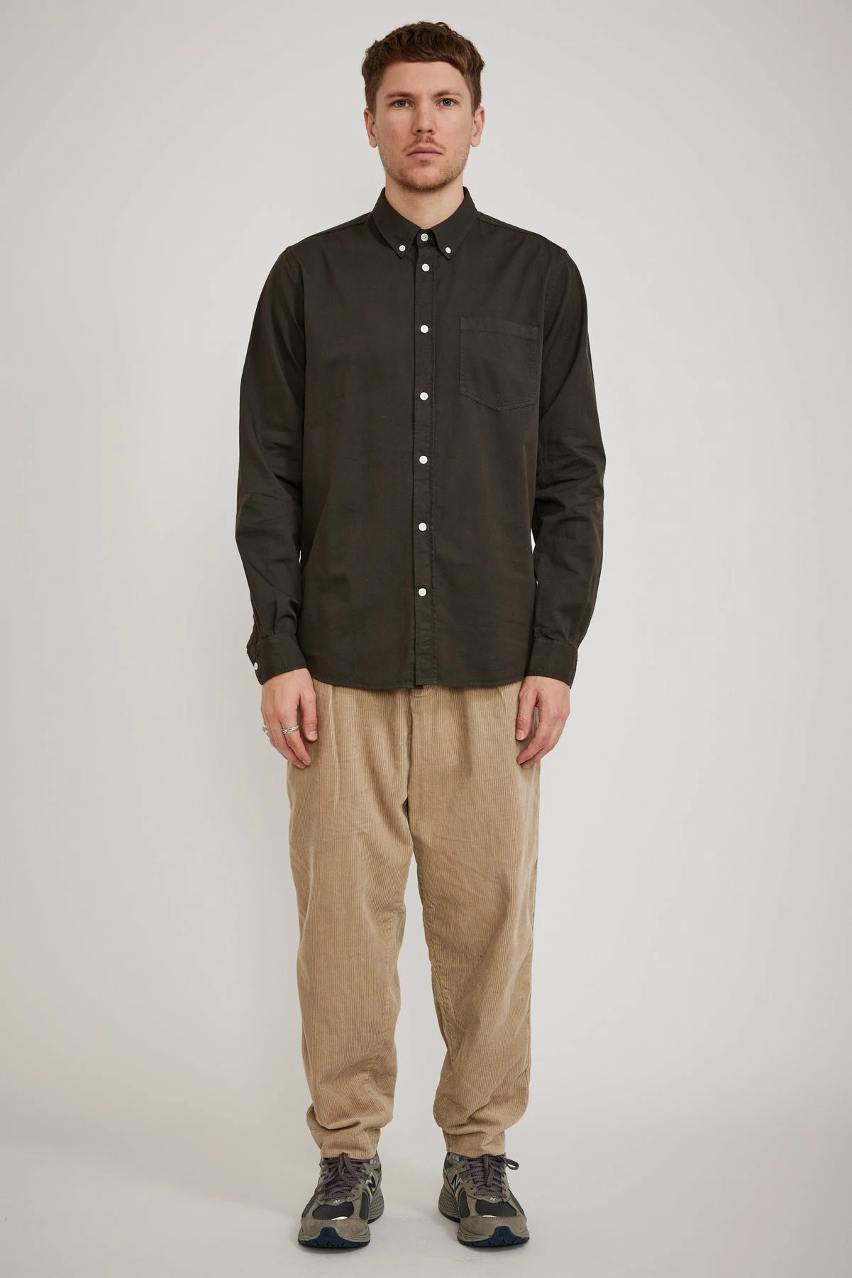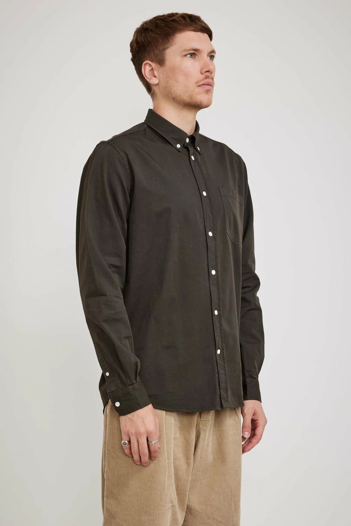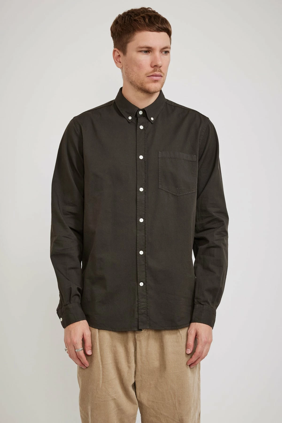 Algot’s cousin Anton from Norse Projects is crafted from a light-weight twill cotton for a classic finish. Still garment dyed the colour is richly pigmented and designed to fade with wear to bring out more green tones. Simple detailing with a patch chest pocket and mother of pearl buttons, the light-weight fabric has minimal transparency. The fit is relaxed through the body and shoulders with a long body and sleeves ideal for those who wants a bit more length.