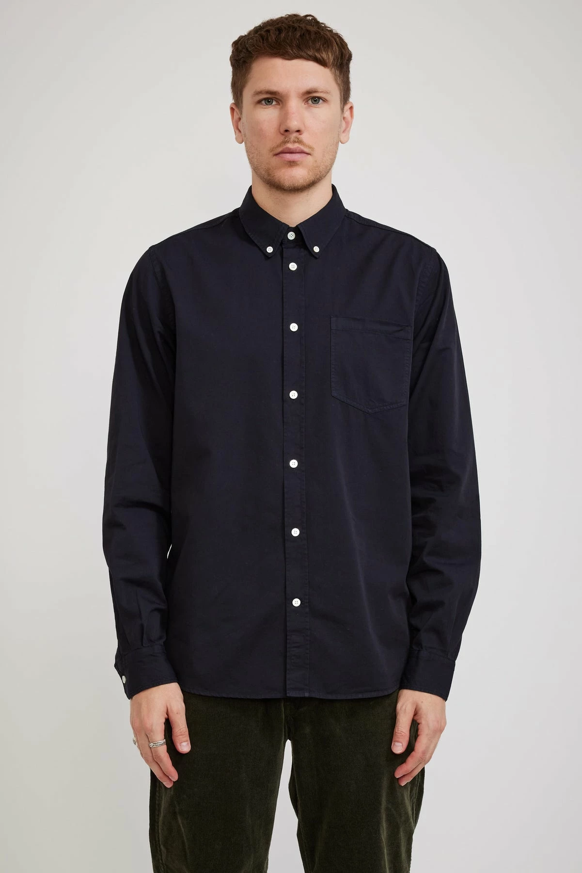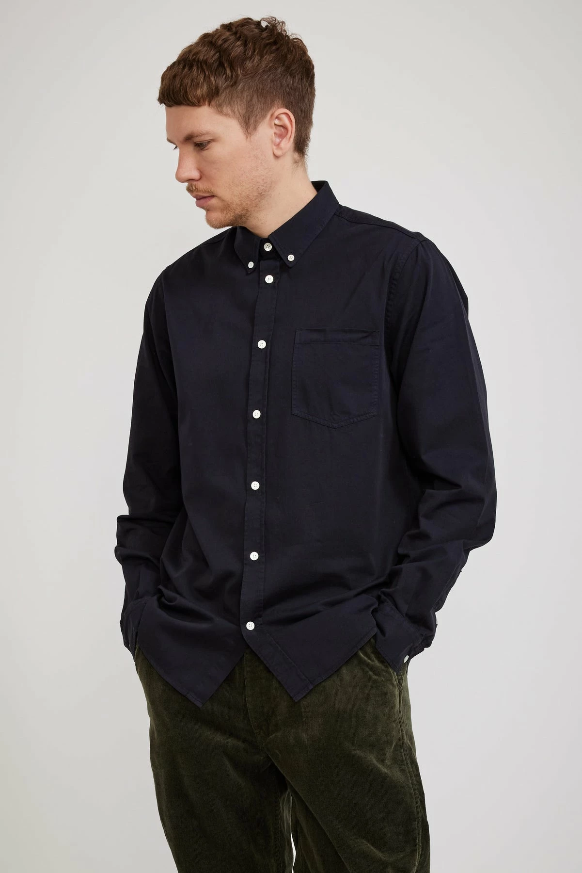Algot’s cousin Anton from Norse Projects is crafted from a light-weight twill cotton for a classic finish. Still garment dyed the colour is richly pigmented and designed to fade with wear to bring out more blue tones. Simple detailing with a patch chest pocket and mother of pearl buttons, the light-weight fabric has minimal transparency. The fit is relaxed through the body and shoulders with a long body and sleeves ideal for those who wants a bit more length.