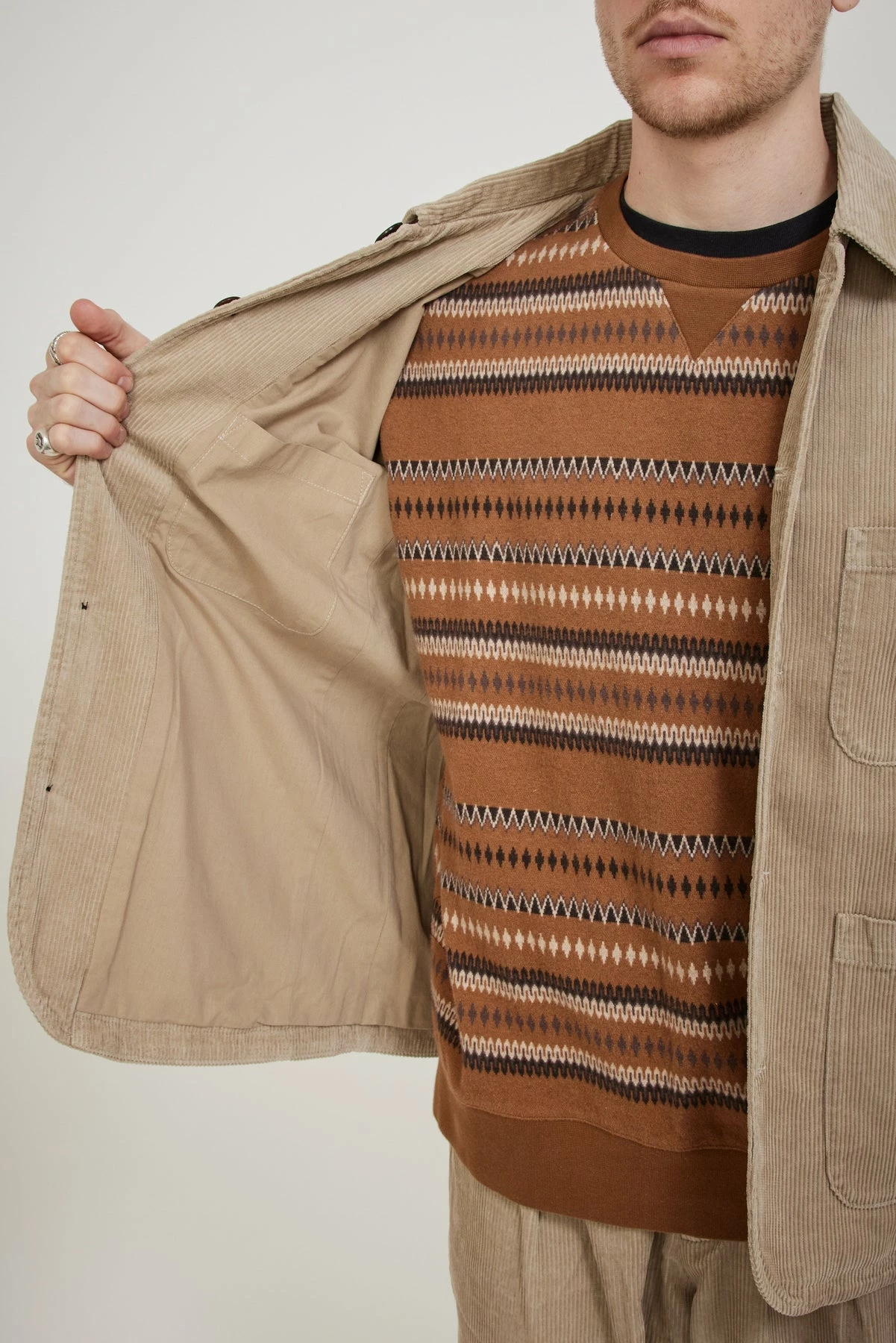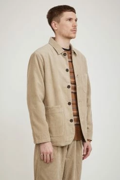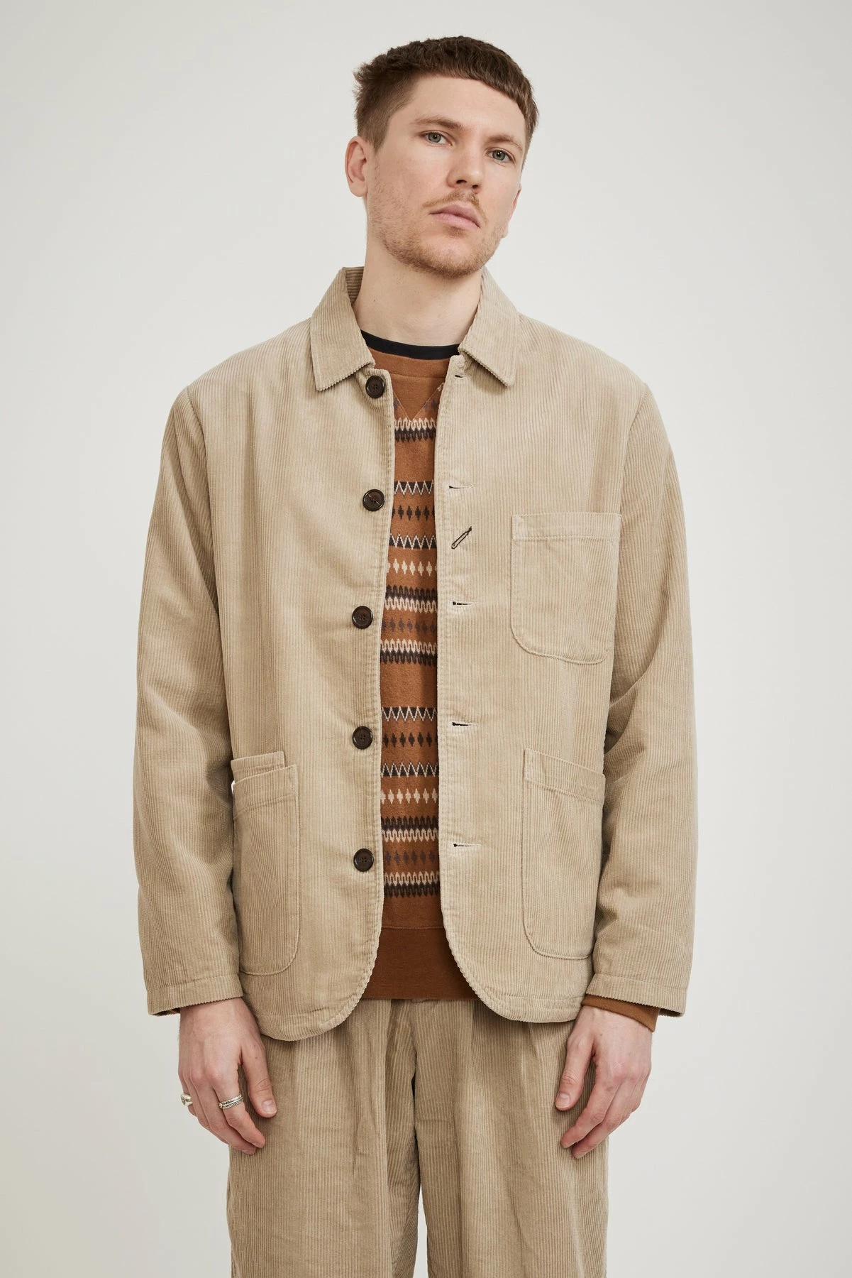 The Bakers Jacket by Universal Works is their original take on the classic chore jacket and one of their most popular silhouettes. This season in a stone coloured corduroy it is a mid-weight and features an additional pocket on the front with a doubled pocket on the right waist. Can be worn as a suit for those who dare, with the Pleated Track Pant in the same stone corduroy.