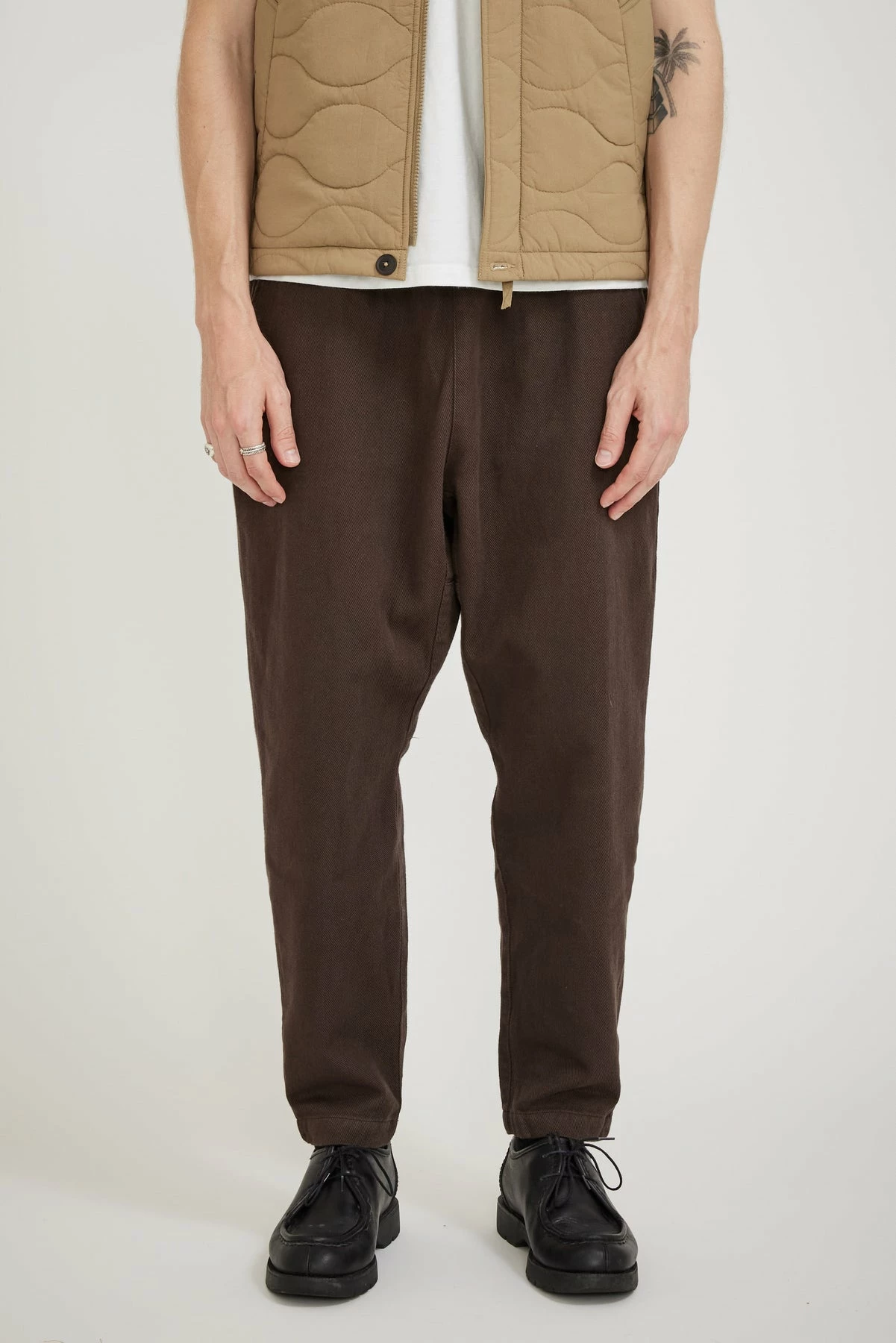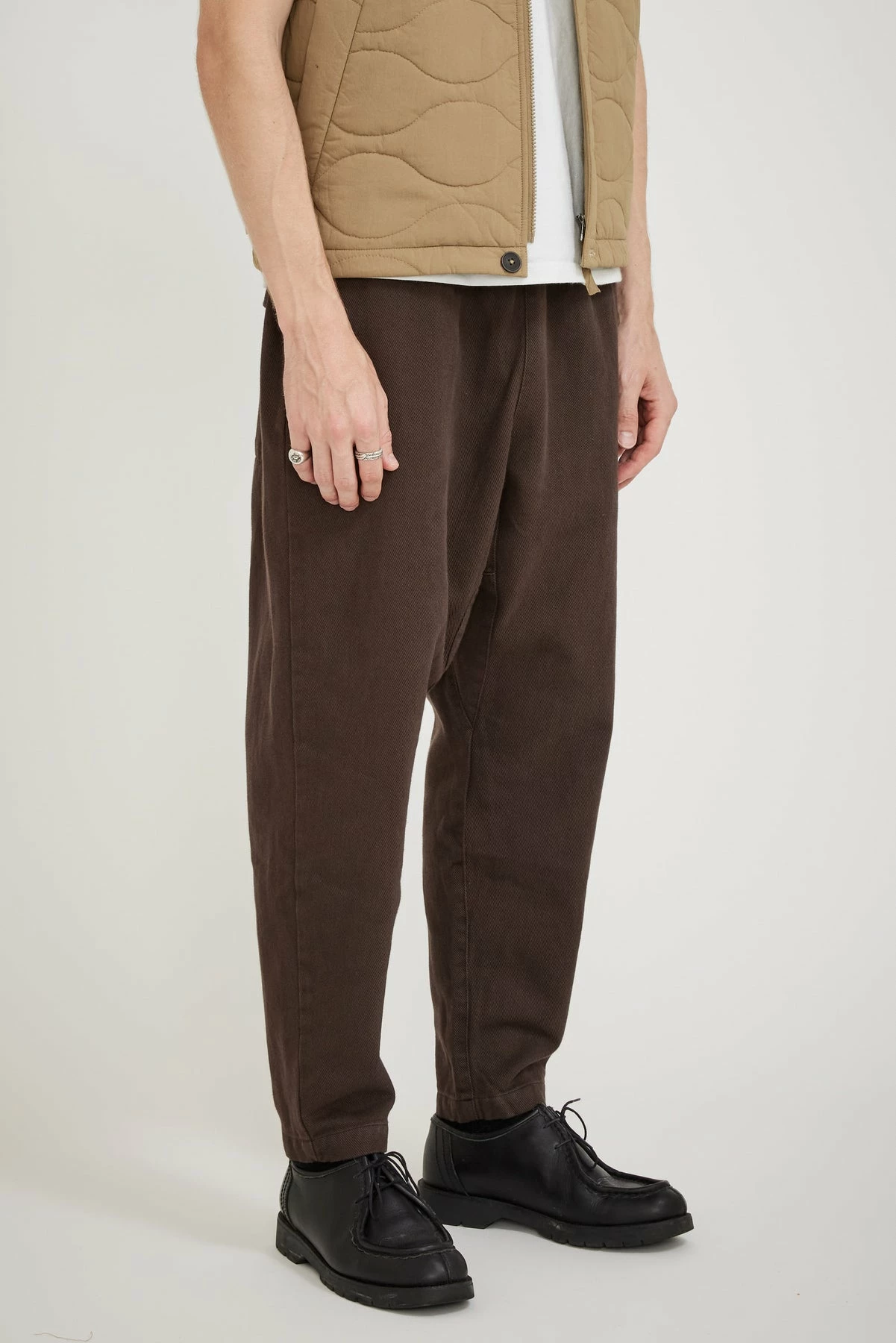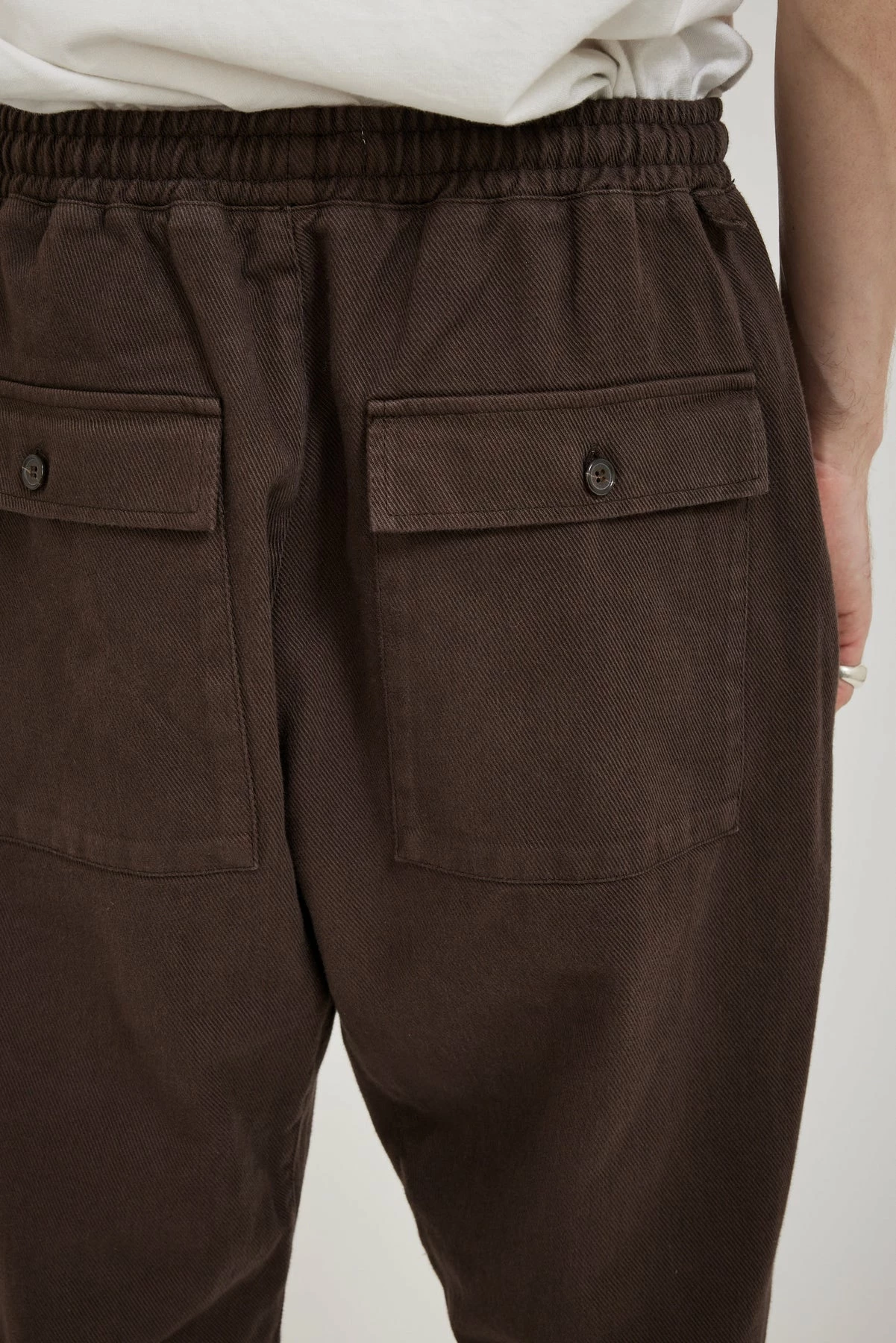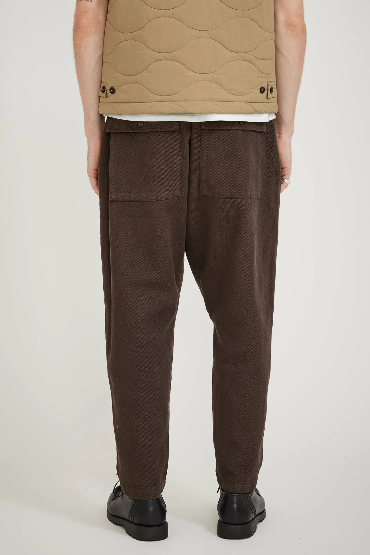 Comfort is key here with the Braga Pant from Universal Works, cut wide and relaxed in a soft mid-weight cotton twill, the colour will wear in nicely. The shape is relaxed through the seat and thigh with a neat taper into a straight leg opening. An elasticated, drawcord waistband adds to the comfort, finished with button flap pockets and a small key loop on the back.