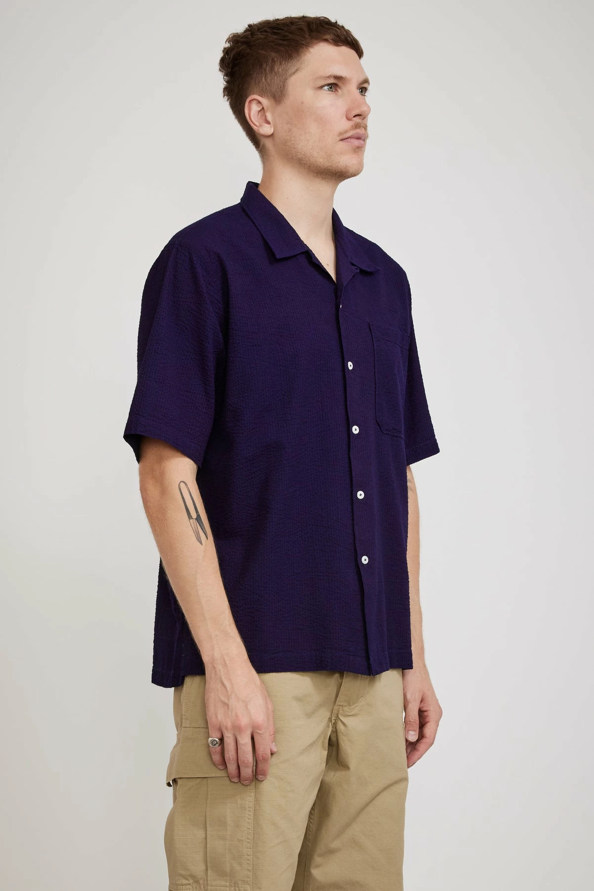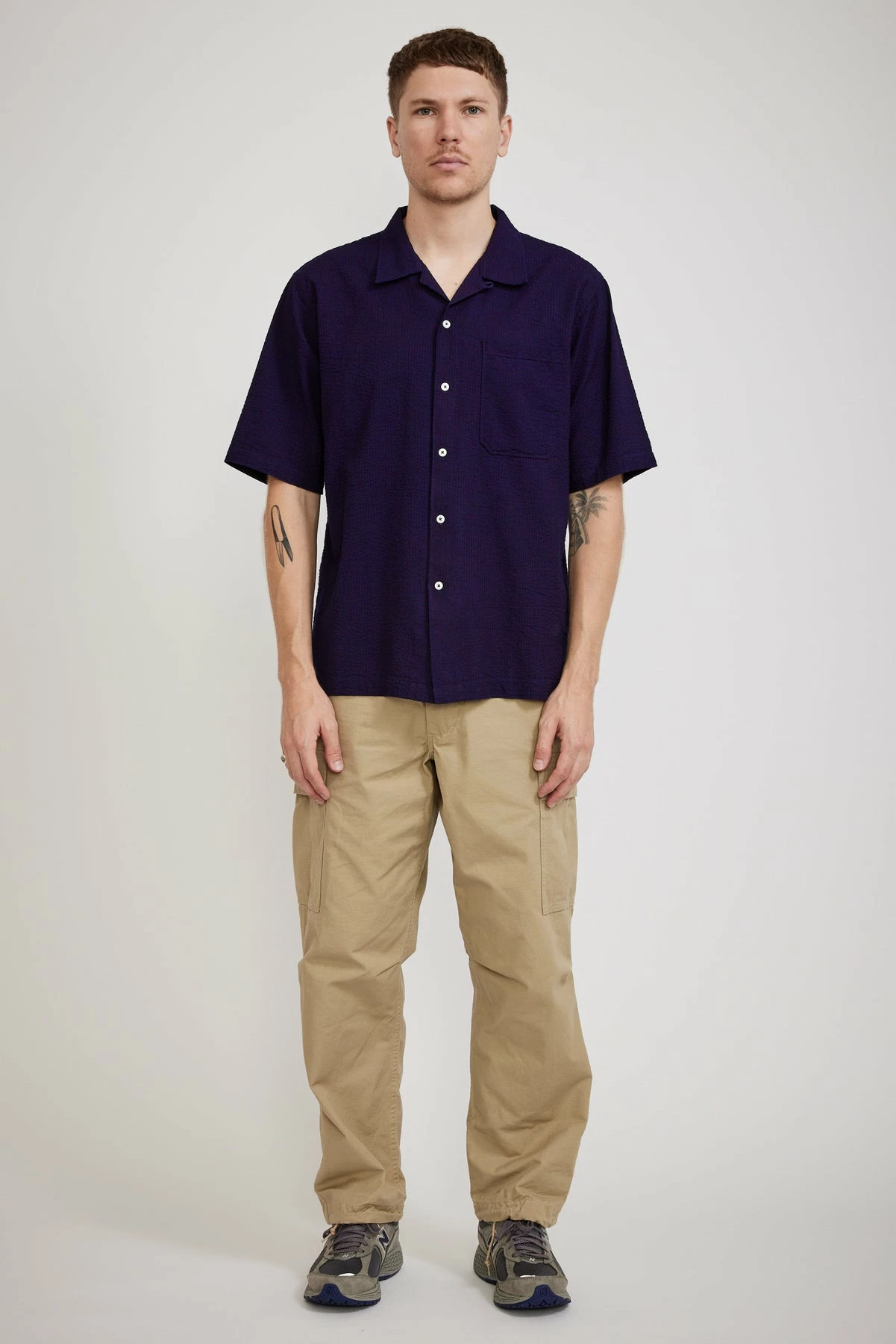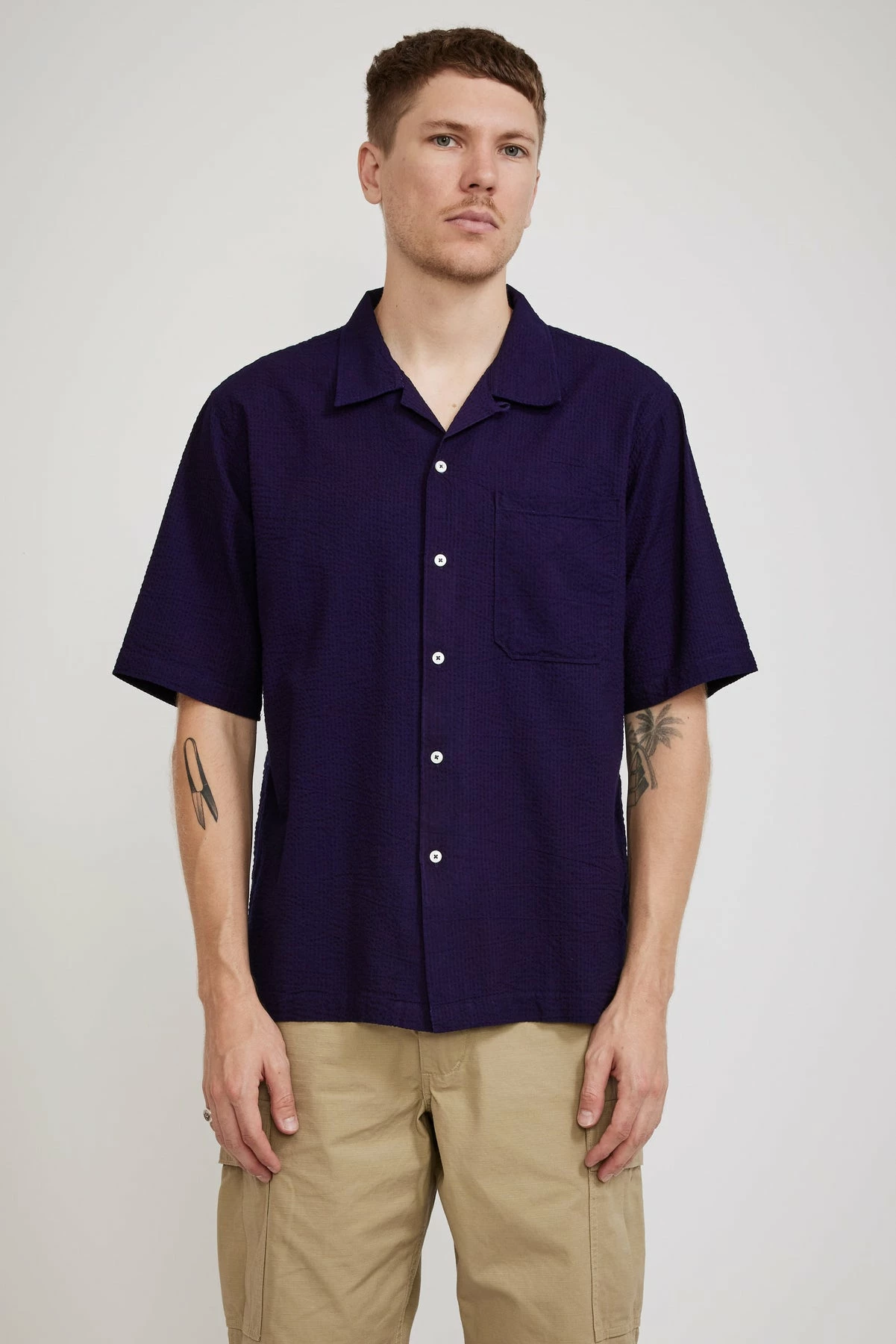 The Universal Works Camp Shirt is an easy choice if you need some new staple shirting, the relaxed shape looks great on and this seasons soft and light seersucker is perfect for extra hot days.