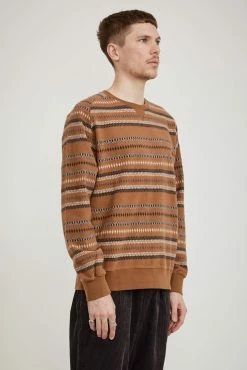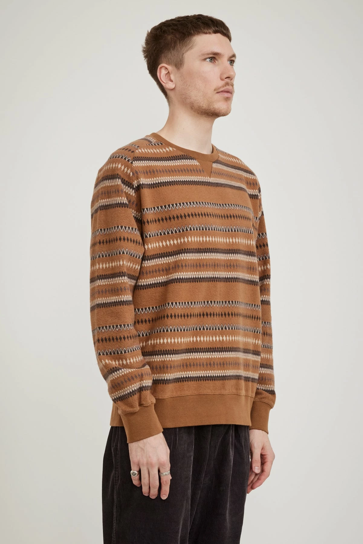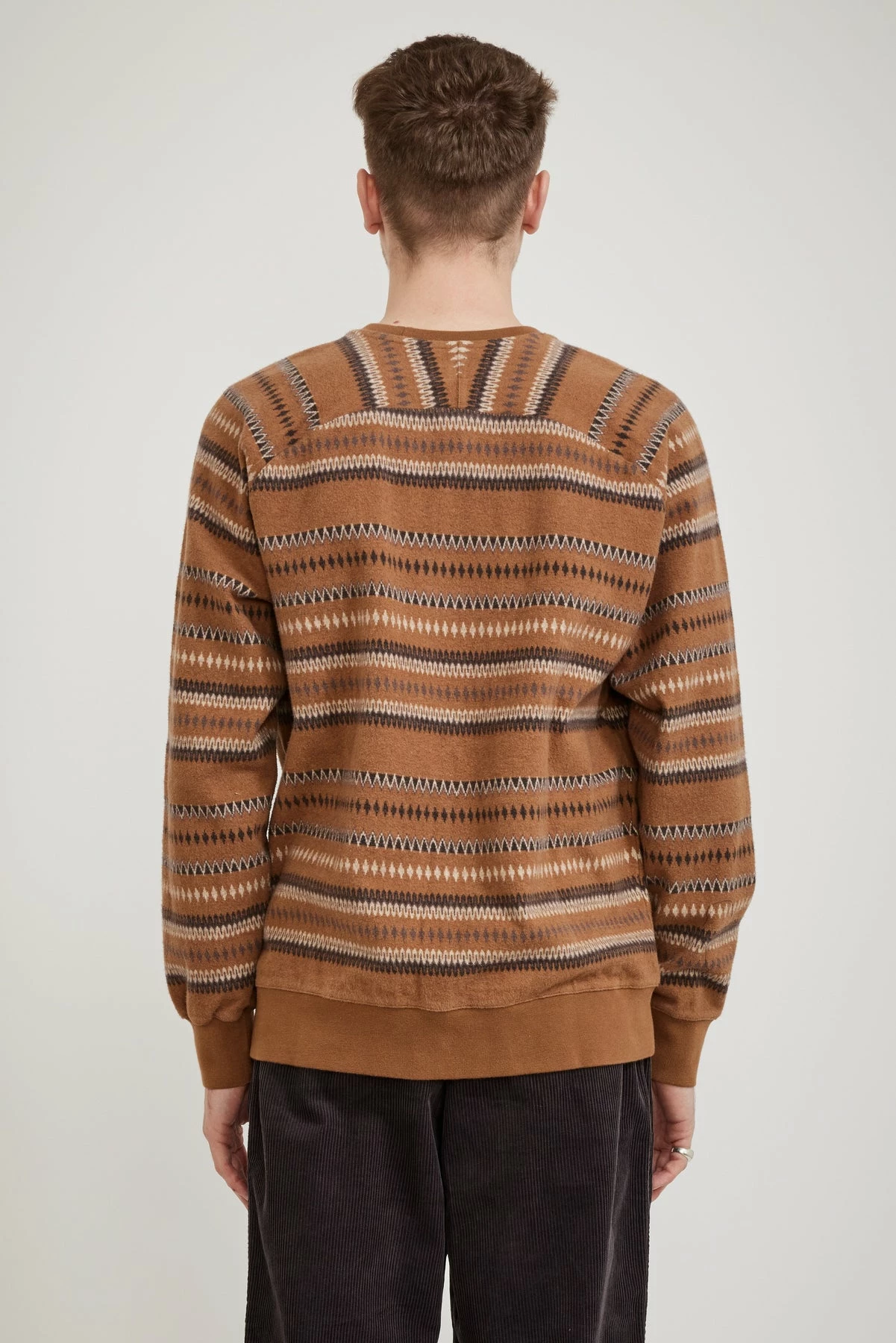 A classic Fair Isle Knit recreated in a washable and comfortable alternative, this crew neck sweatshirt from Universal Works is made from a mid-weight knitted jacquard jersey making it a great stand alone jumper and perfect for layering as well. Saddle shoulders and ribbed cotton trim give it simple sweatshirt styling.