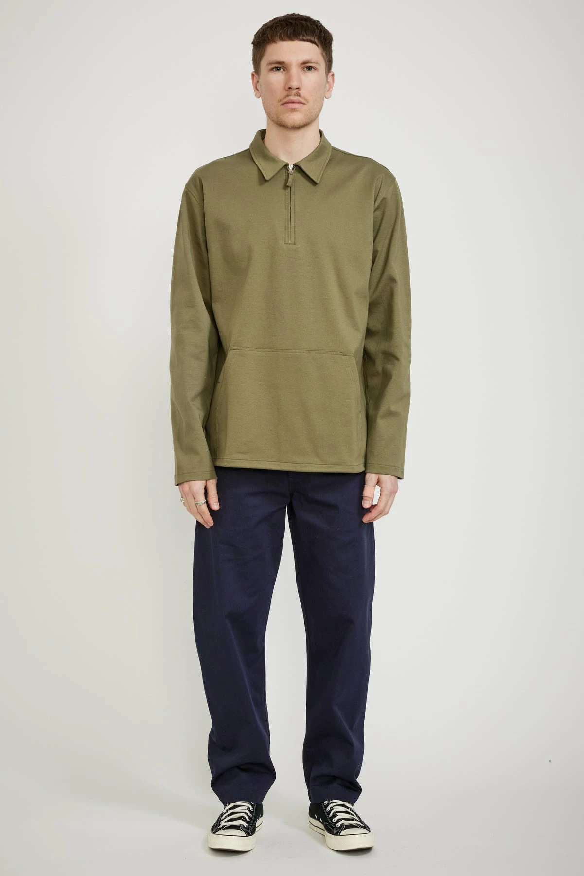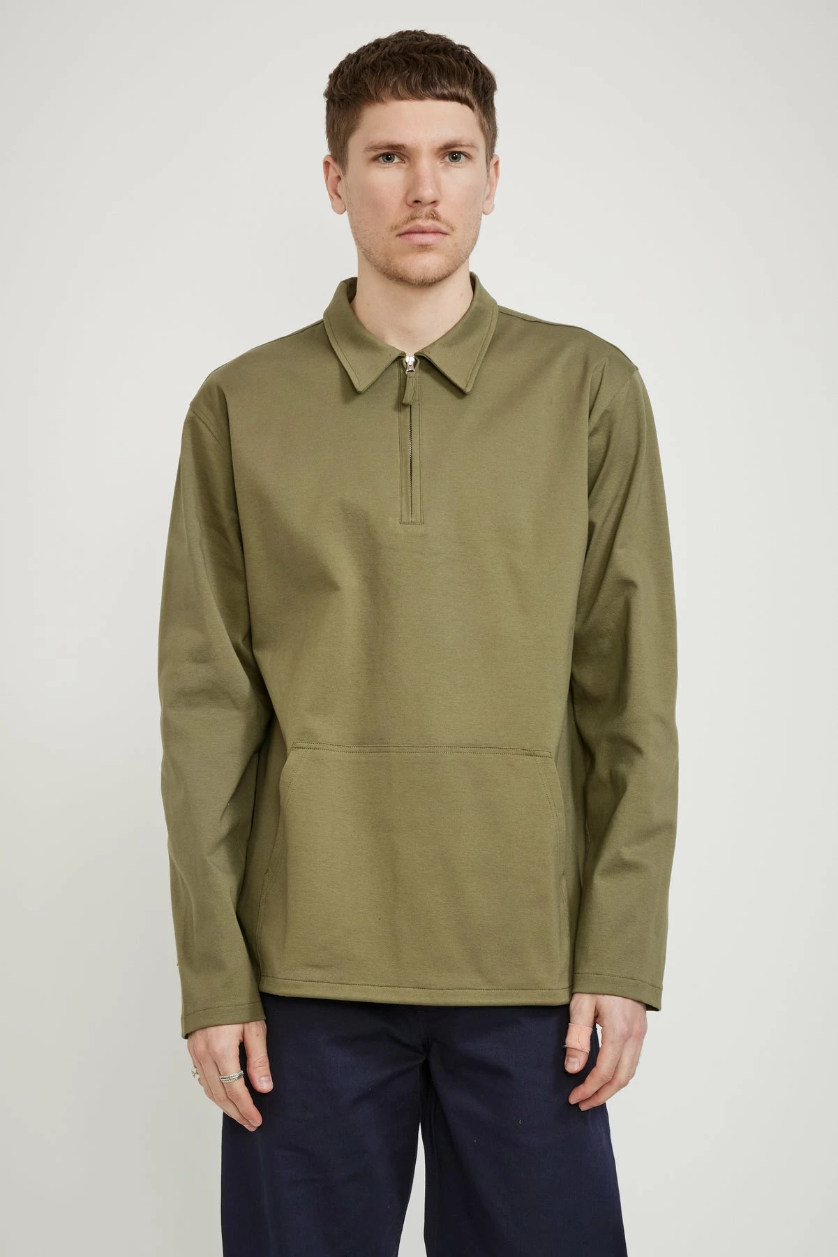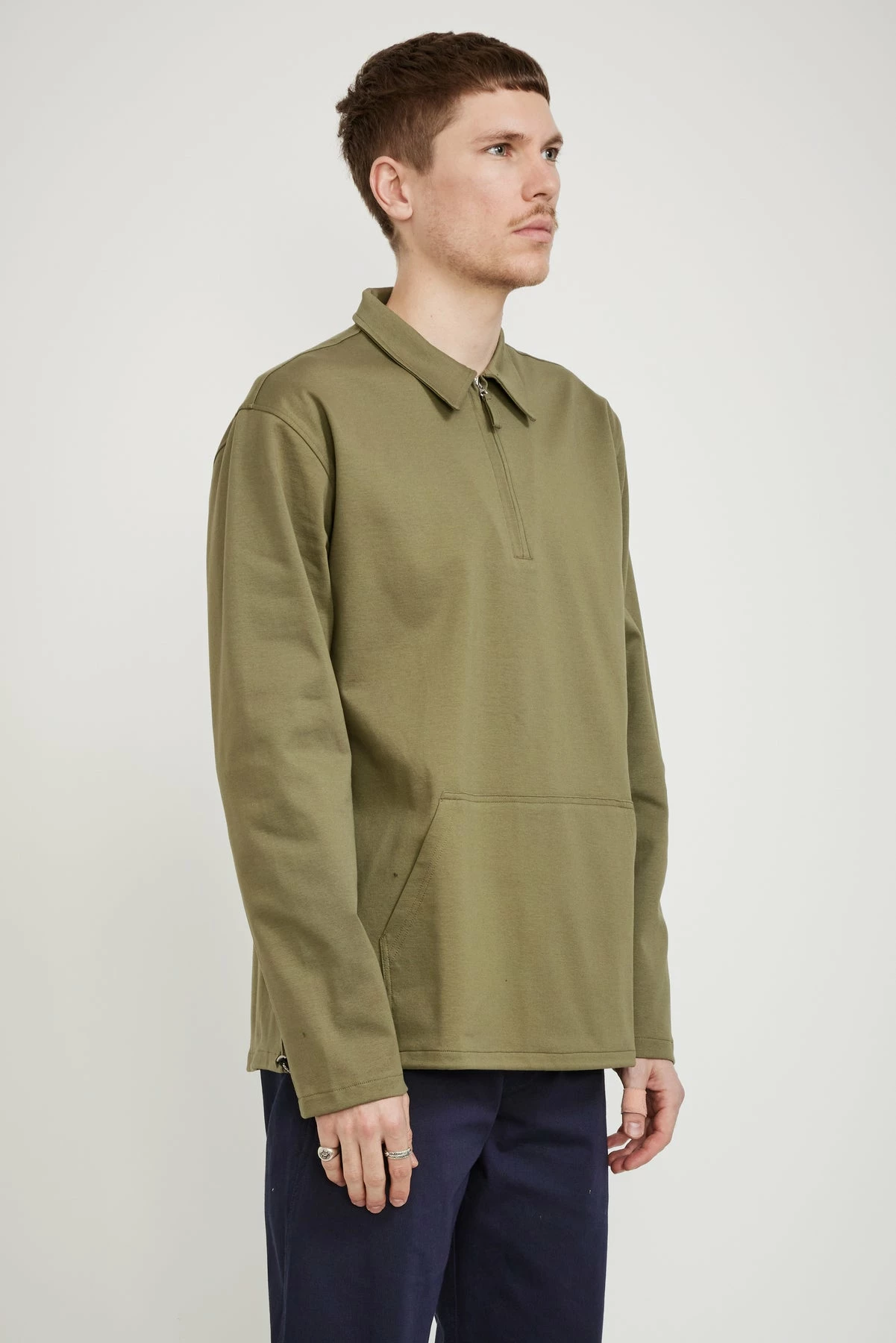 Warm and durable with a dry touch, the tight-weave jersey becomes softer with every wear, with the colour pigment becoming richer also, for a unique worn in look. The fit is relaxed through the shoulders and body, ideal for an outer layer and the sleeve and body length is long, great for taller men. Finished with a half zip closure, kangaroo pocket and elasticated toggle hem.