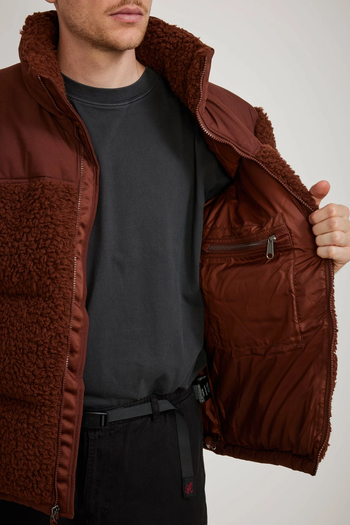The iconic Nuptse Jacket from outdoors brand The North face has an unmistakable silhouette; with its oversized down baffles and stow-able hood, updated this season with a high-pile outer.