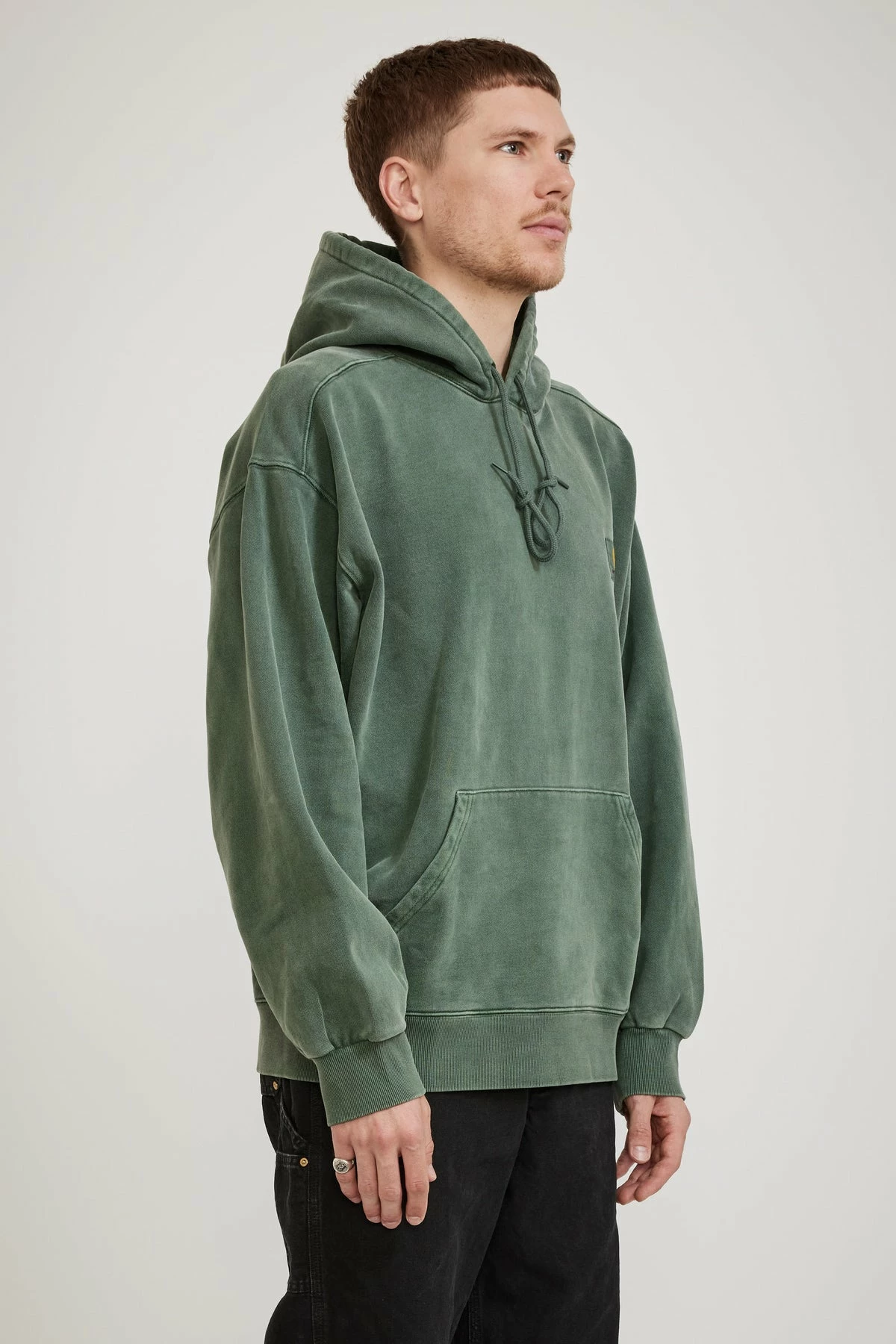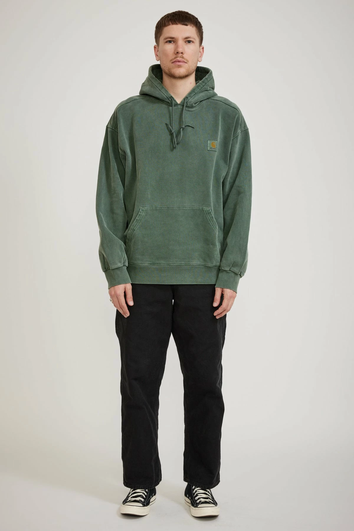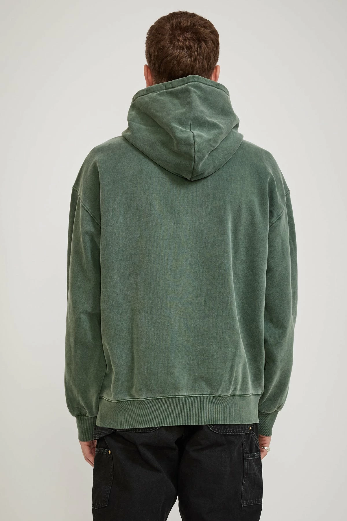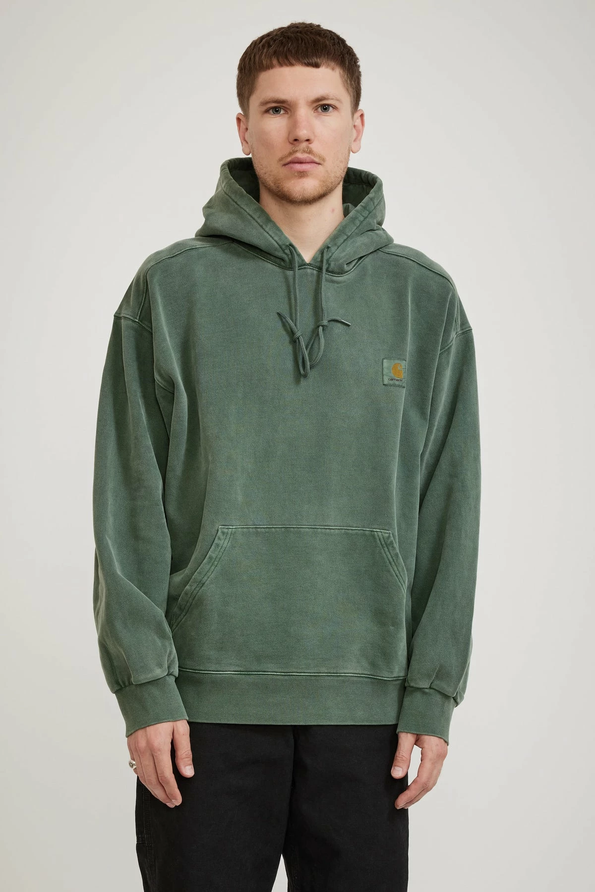 The Hooded Vista Sweat from Carhartt WIP has been garment dyed in a rich Boxwood green after construction for an all over colour finish that will fade beautifully over time. A boxy oversized fit in a mid-weight fleece with ribbed trims and square chest logo.