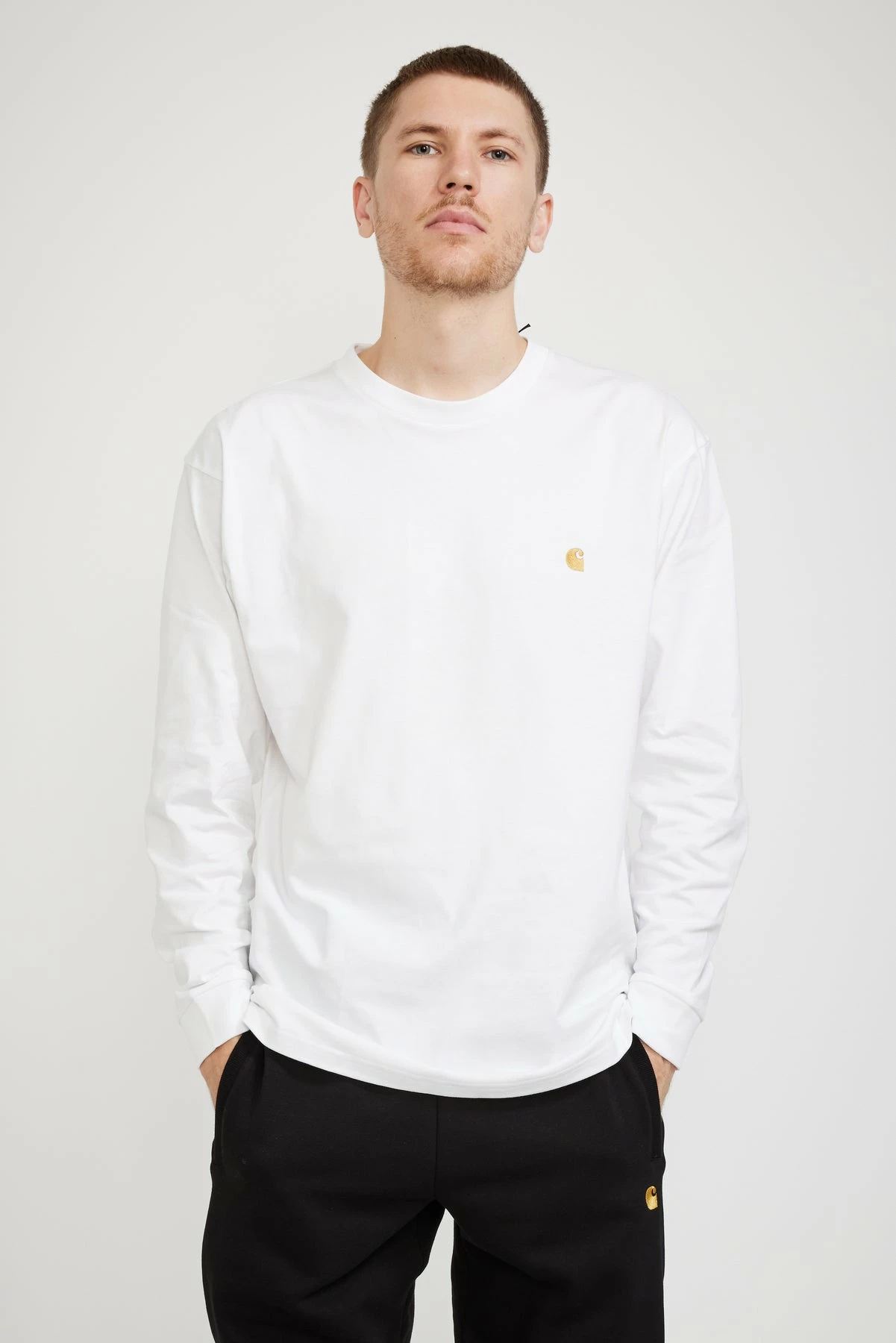 The Long Sleeve Chase T-Shirt is is crafted from a heavier weight combed cotton jersey for a loose fit and soft handle. Features the embroidered Carhartt WIP logo on the left chest and a bright white finish. Just like a plain tee, but better.