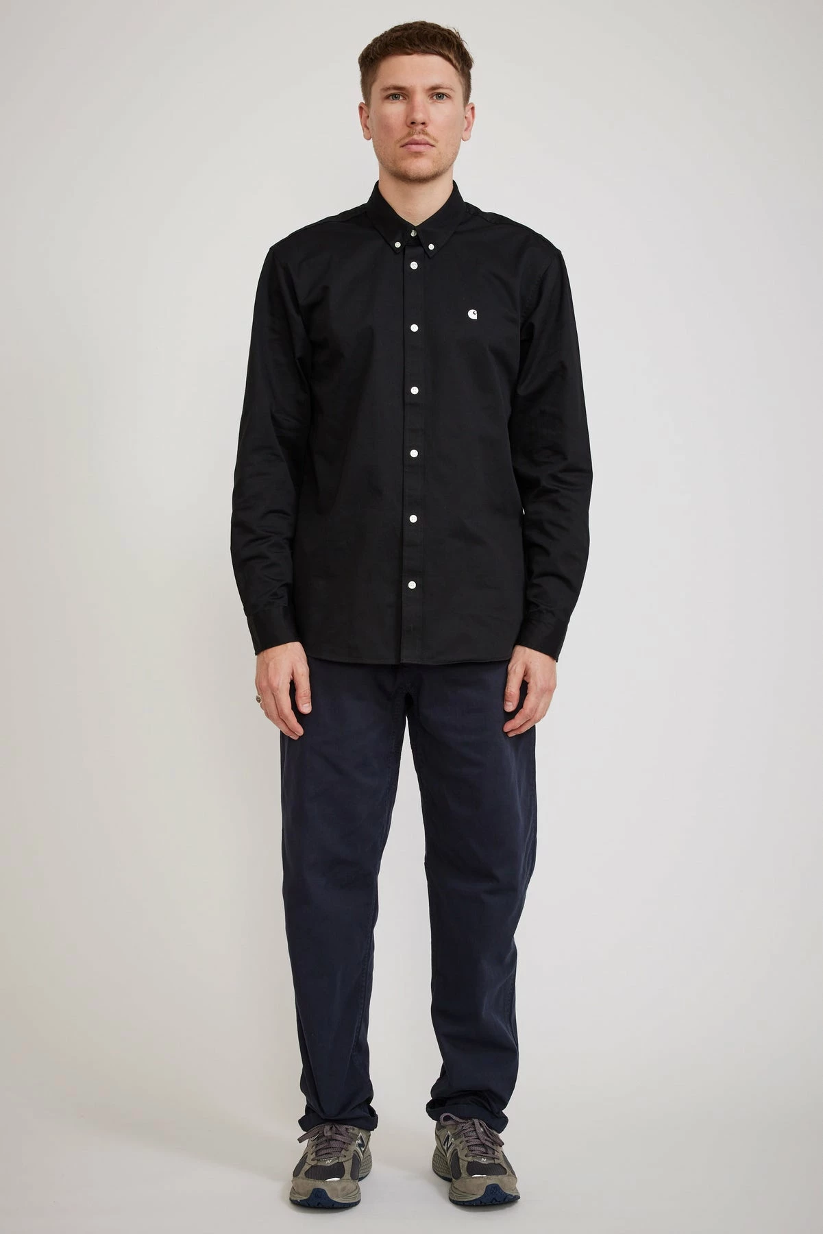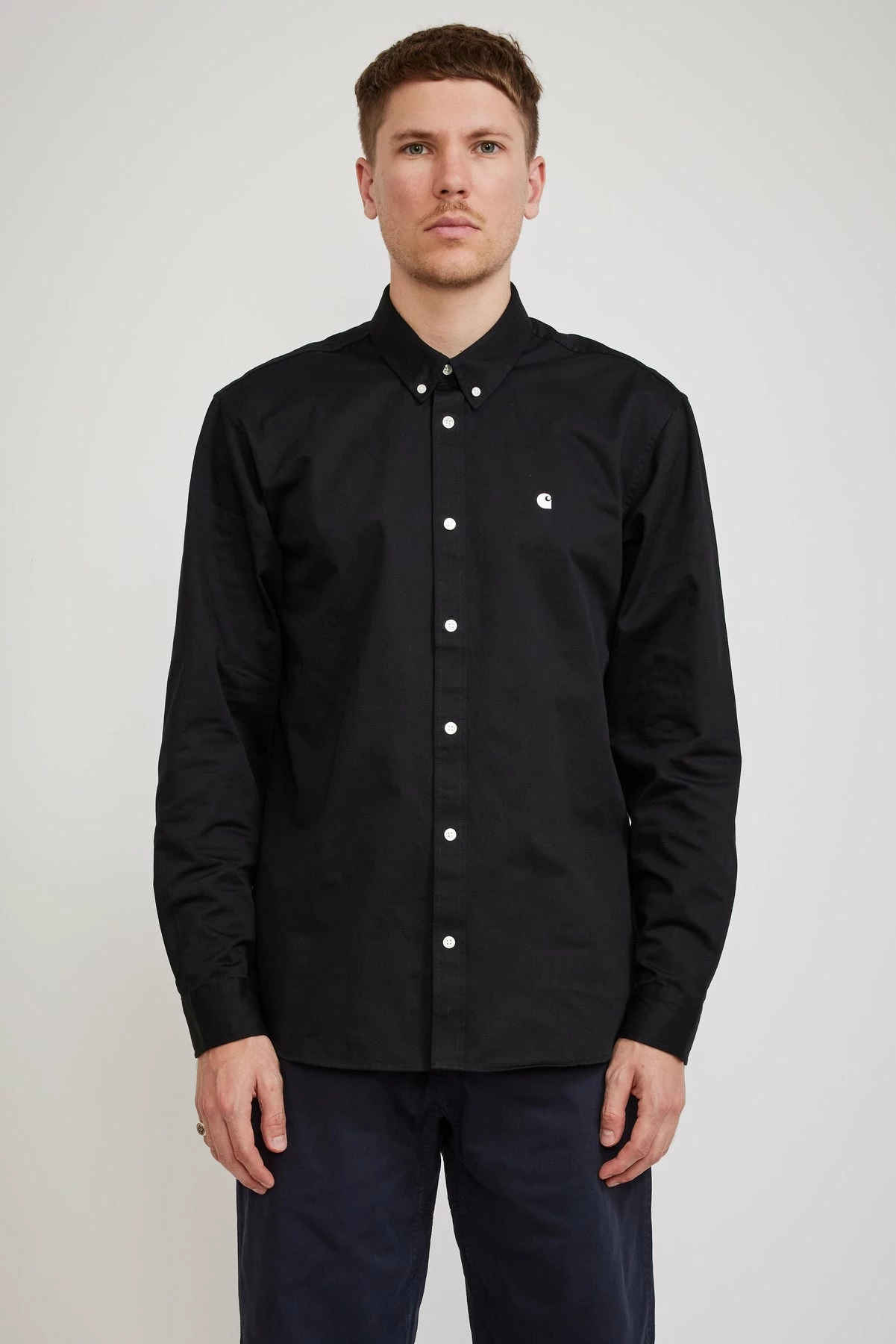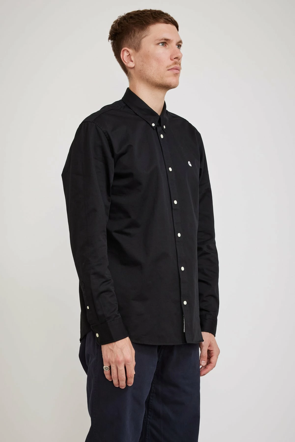 Doesn’t seem to matter how many of these we buy, it’s not enough. The ‘go to’ Carhartt WIP shirt for just about anything, yarn dyed to a rich black for longer lasting colour. Cut from a gutsy 6.5 oz 100% cotton twill with the clearly distinguished Carhartt embroidered ‘C’ on it’s chest… c’mon you want people to know you know! Soft handle with a subtle wash back; it’s all class.