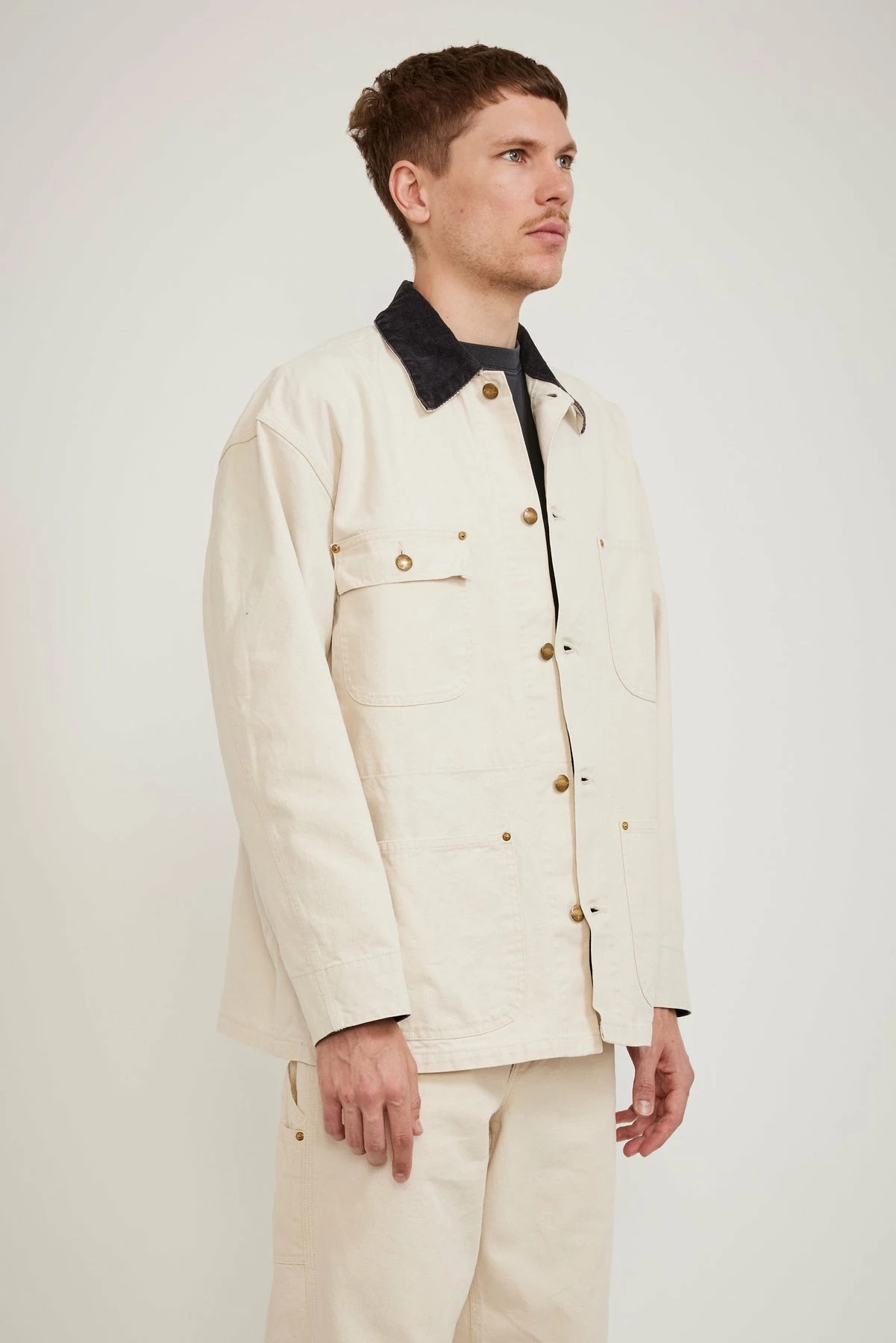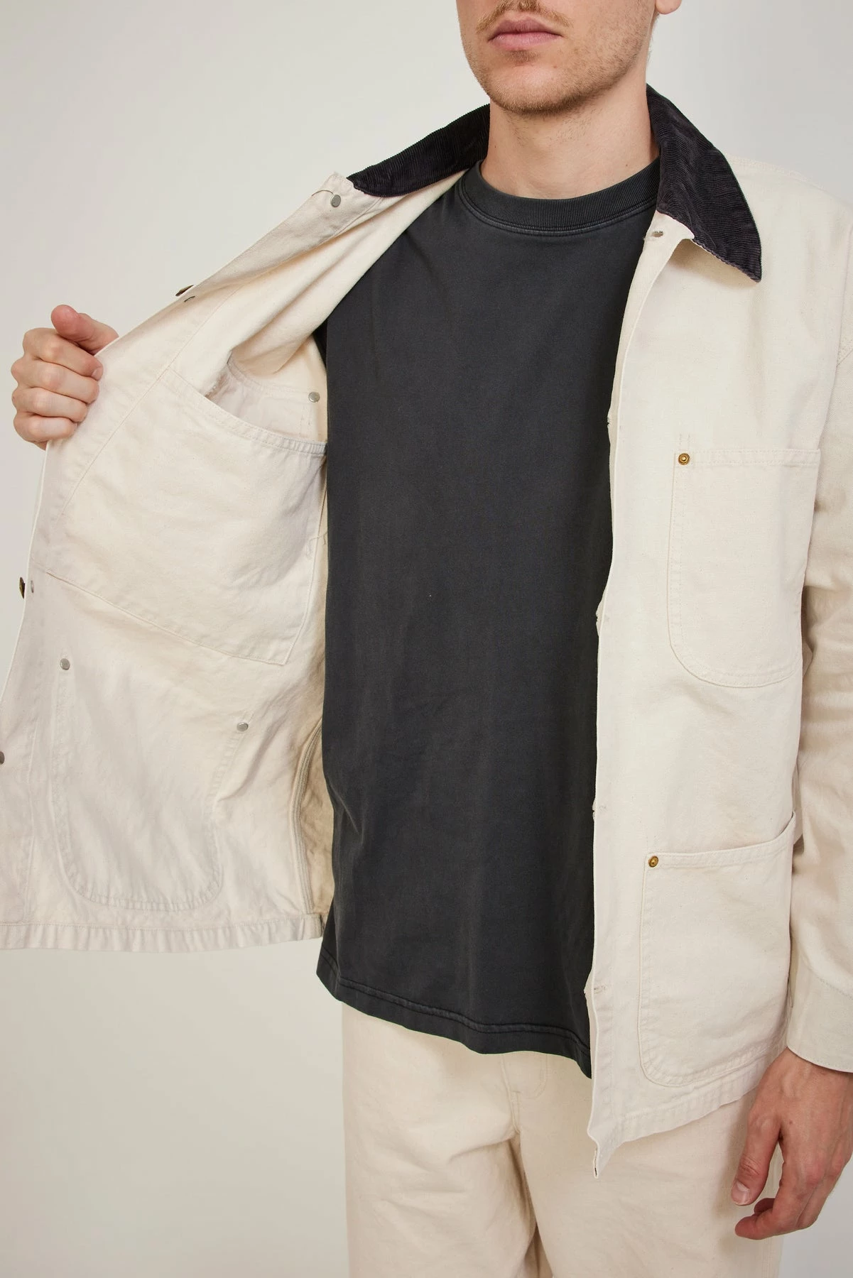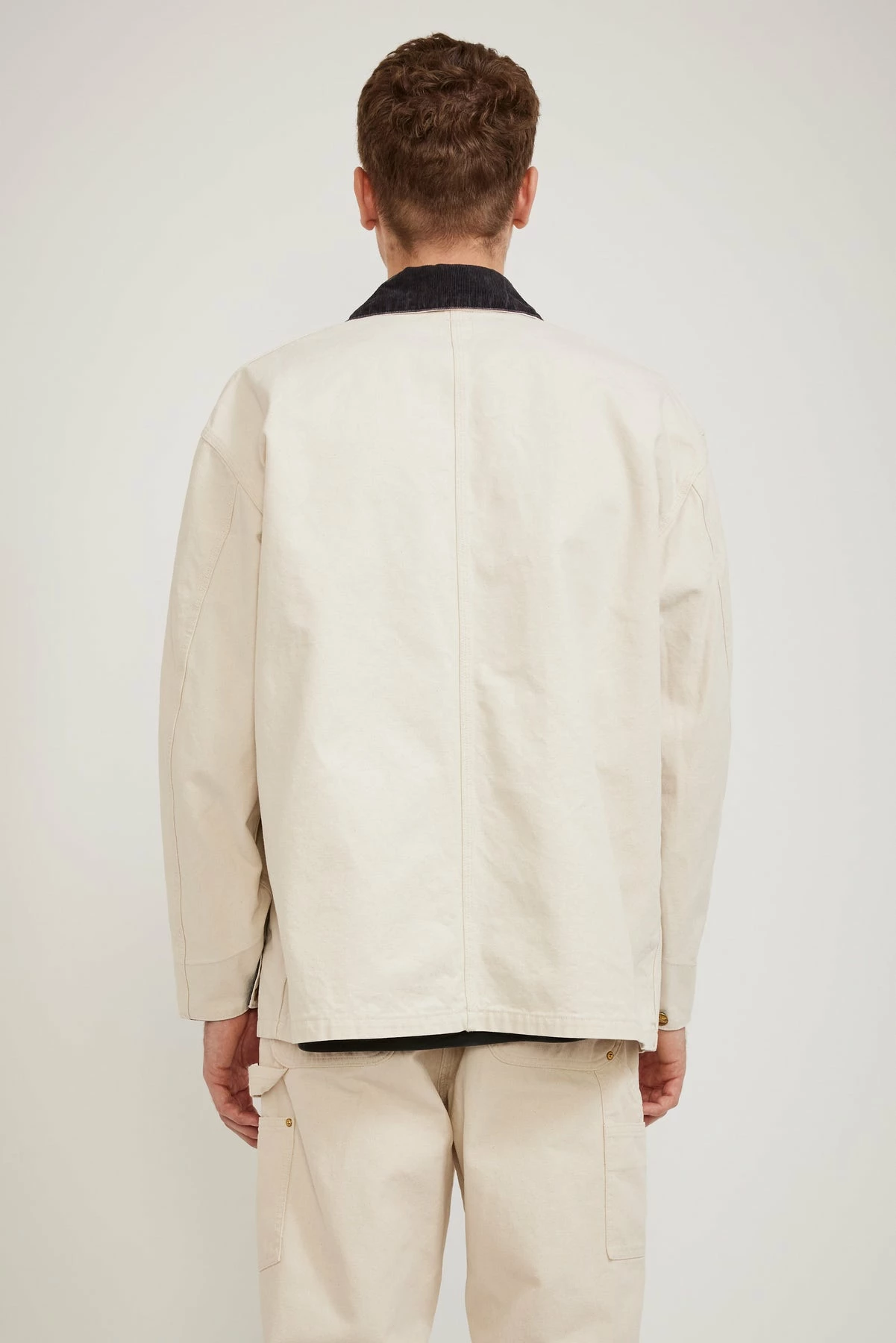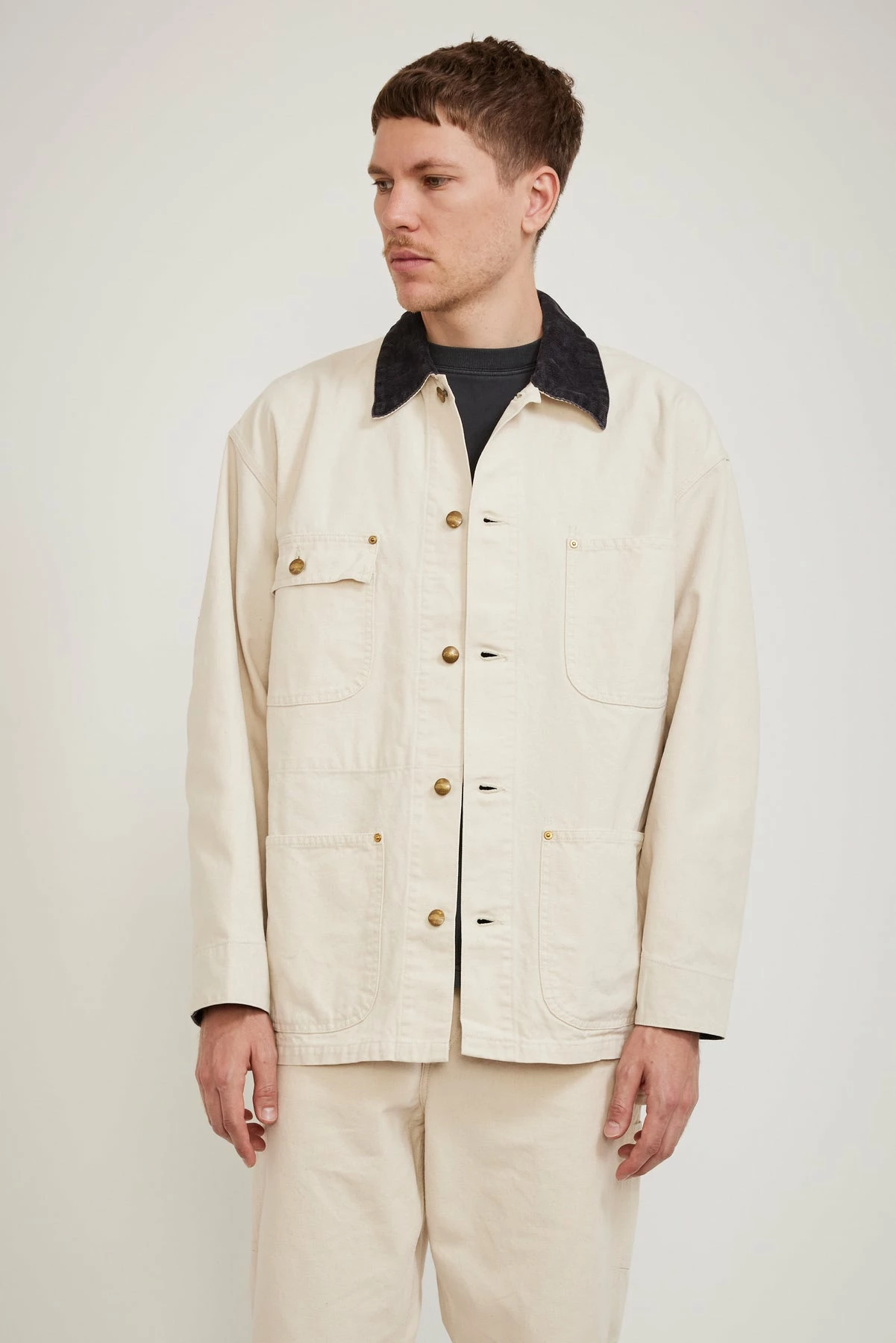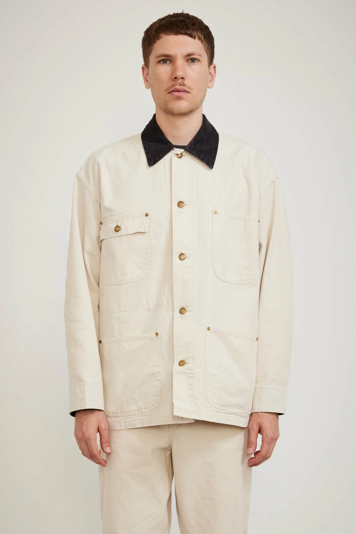 Orslow revisits their classic Coverall , so often a feature of Orslow ranges in denim fabrications , this time reinterpreted in a durable, tightly woven Japanese oxford canvas, trimmed with a corduroy collar. All the traditional coverall detailing including custom made aged hardware, button down and open chest pocketing and bartack reinforcements remain. The perfect pairing partner for their Canvas Painter Pant