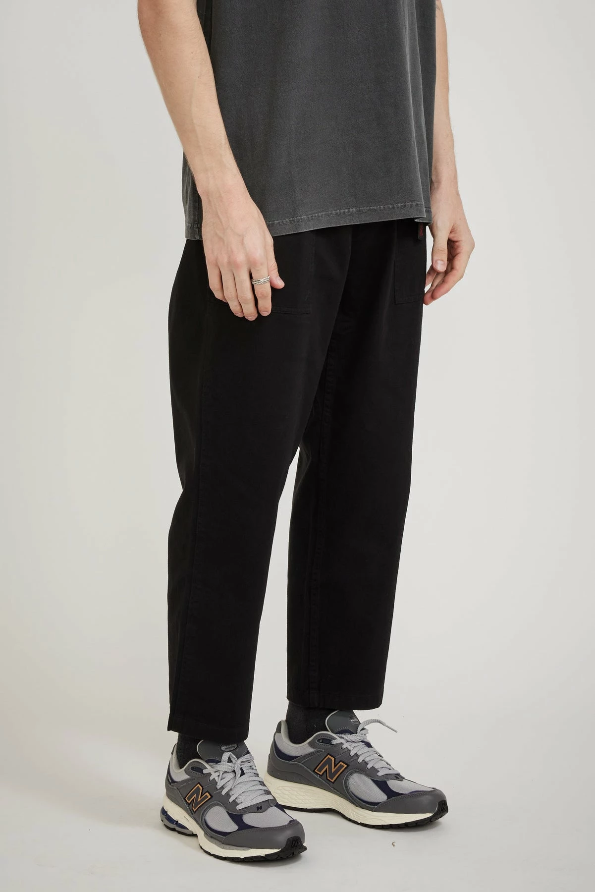 Constructed from hardwearing double ringspun cotton twill with a looser wide leg fit, including gusseted crotch for ease of movement, deep-reach front patch pockets.