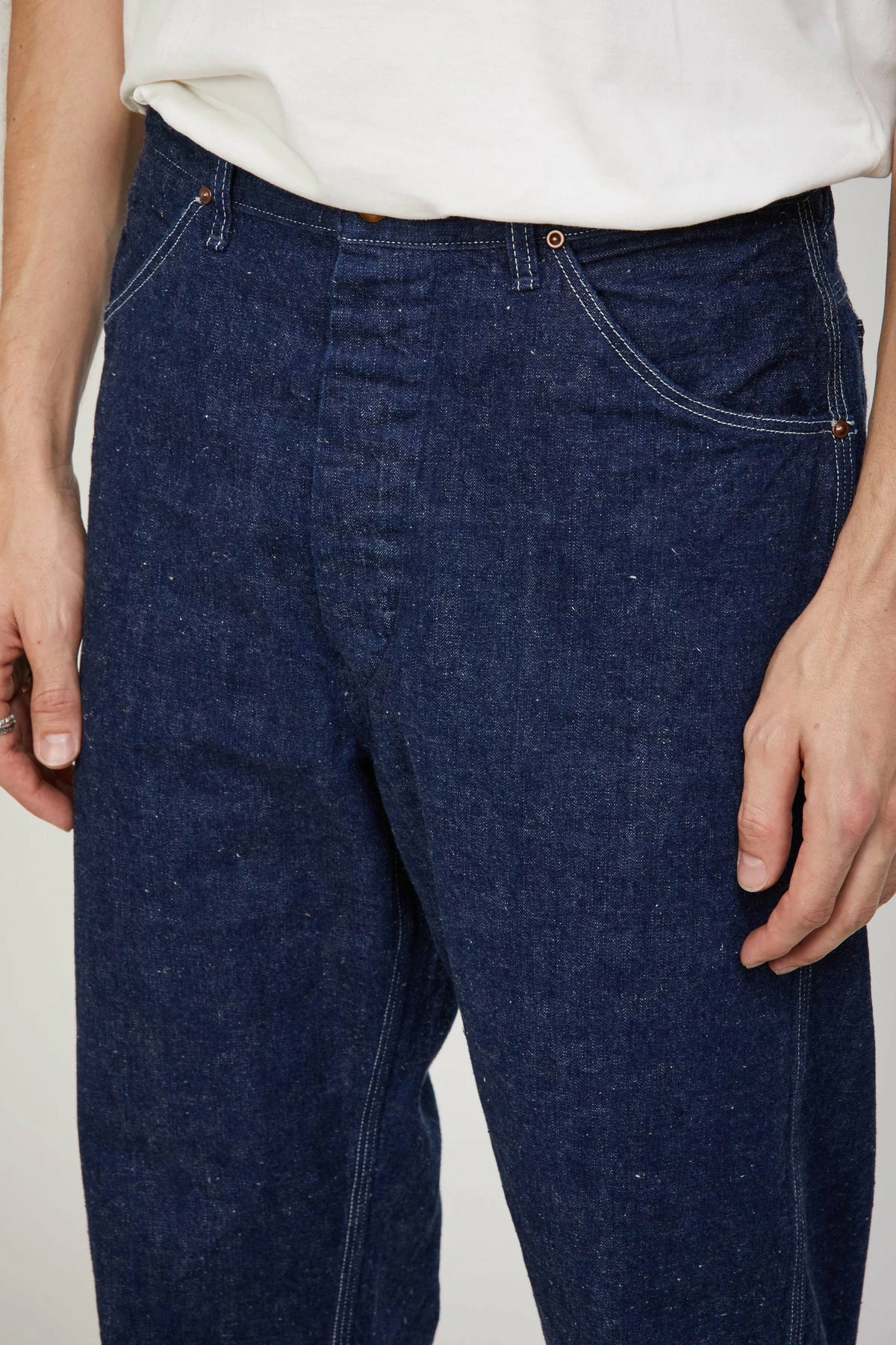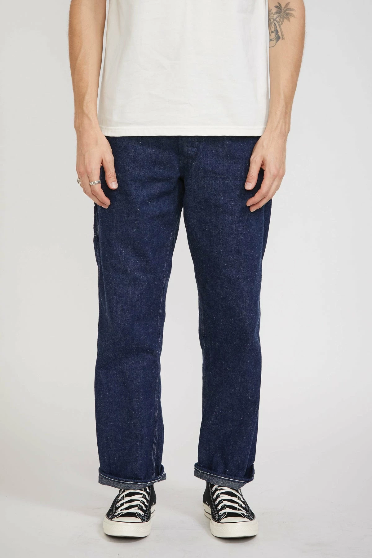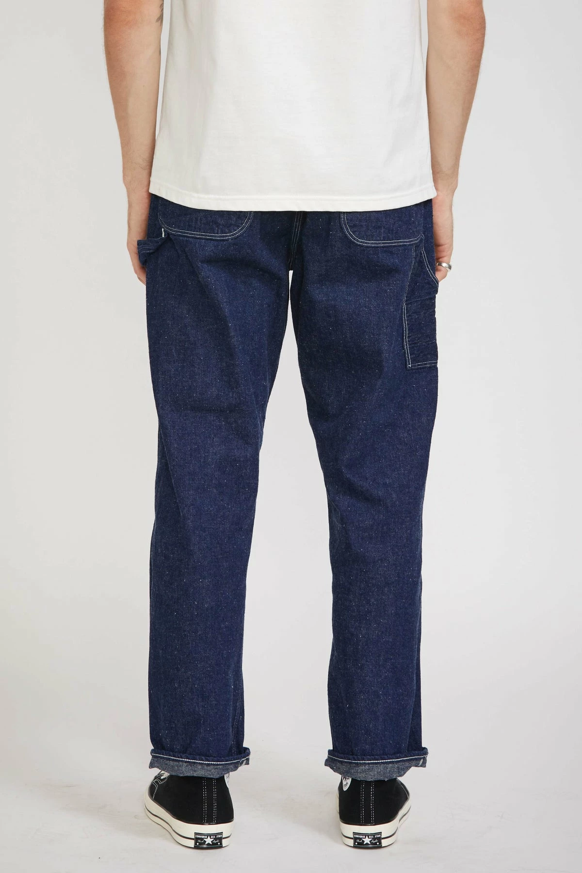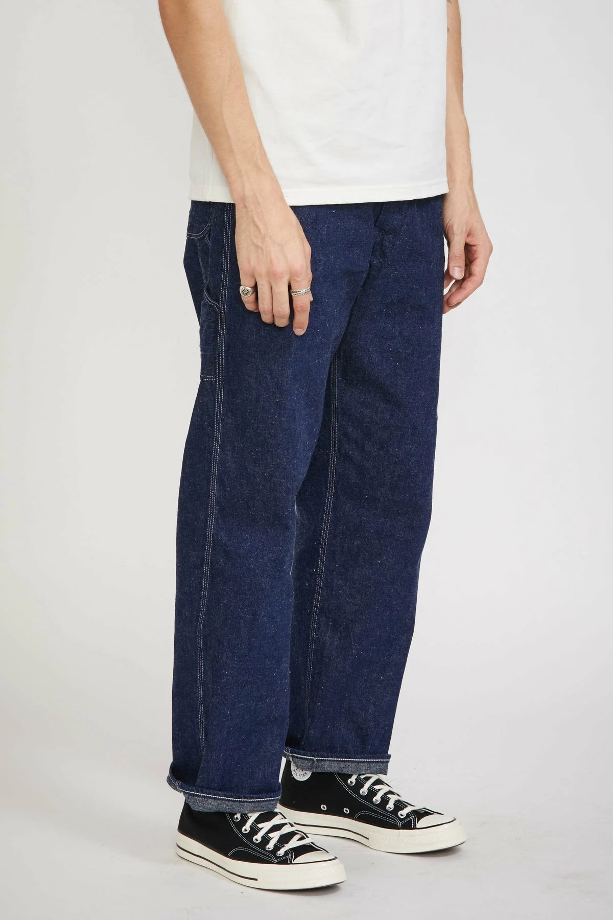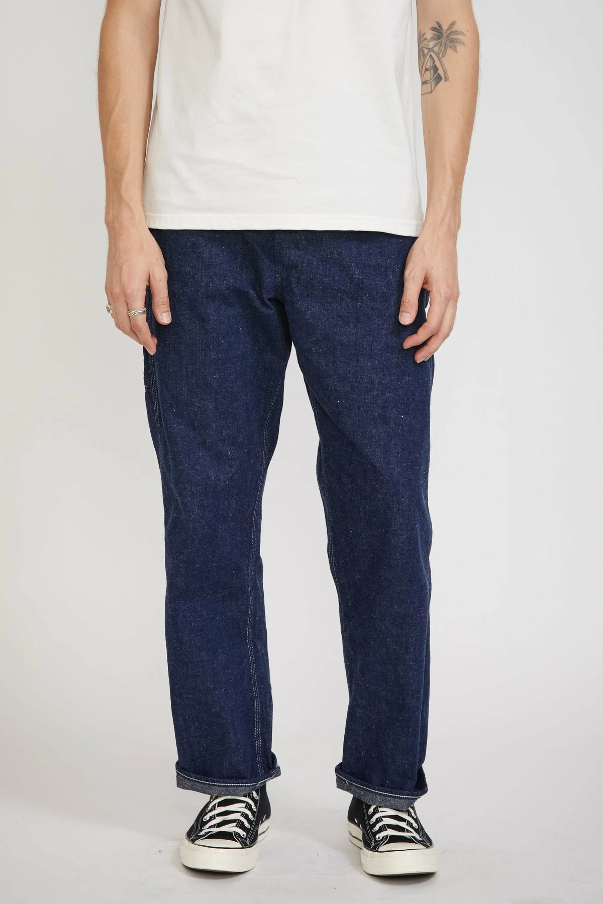 An evergreen workwear classic ‘The Painter Paint’, revisited by Japanese denim makers Orslow. Built from a premium 14oz denim and washed back, highlighting the traditional workwear detailing.
