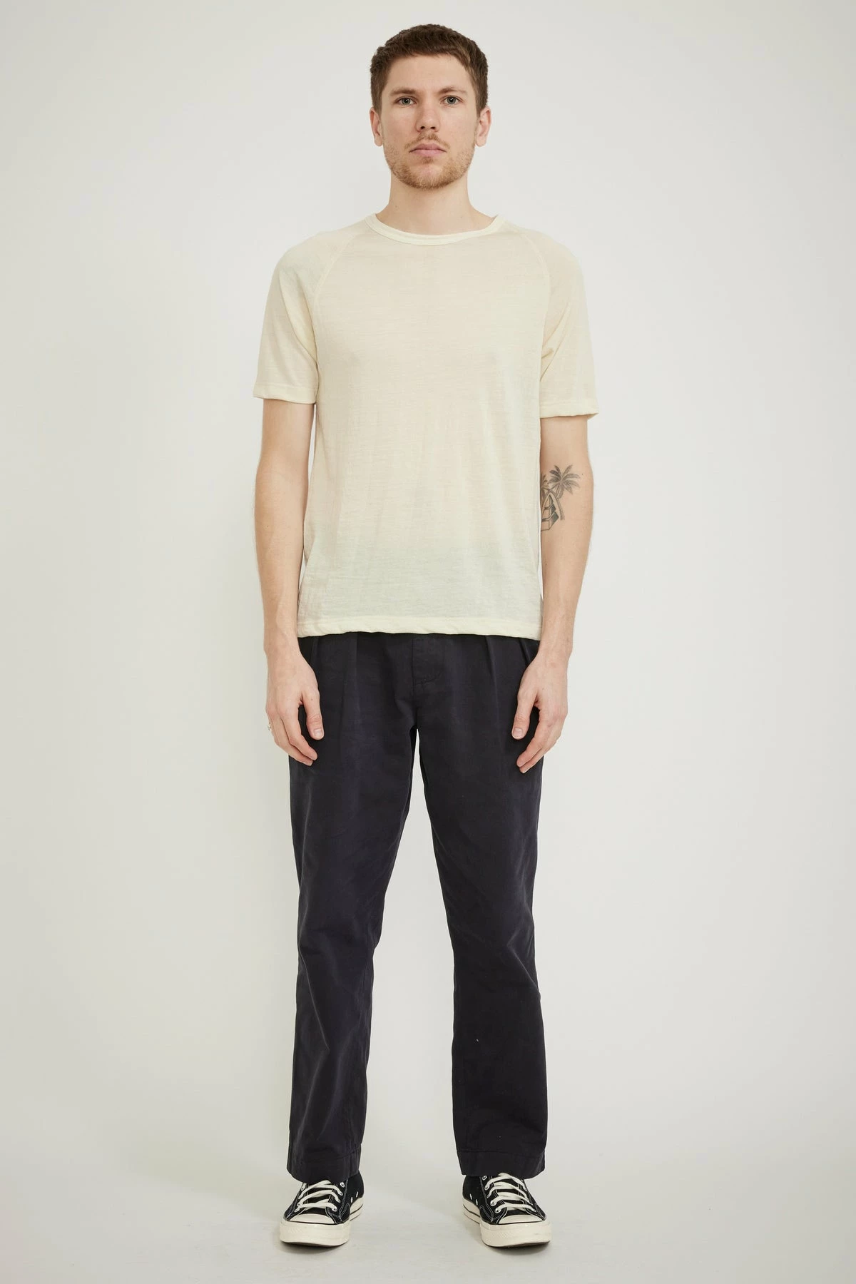 This lightweight 8-gauge merino in short sleeve is loopwheel knitted in Germany from a super fine two-ply yarn. Its natural thermoregulating properties, sweat-wicking abilities, and micron fibres, it’s incredibly comfortable when worn directly against the skin.