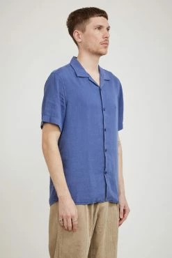 The Miyagi shirt from NN07 is a classic camp collar bowling shirt with drop shoulders and a relaxed body fit. Constructed in a soft light-weight Tencel, one of the most sustainable fabrics on the market currently. Garment dyed to give a subtle worn in look to the fabric and finished with mother of pearl buttons.