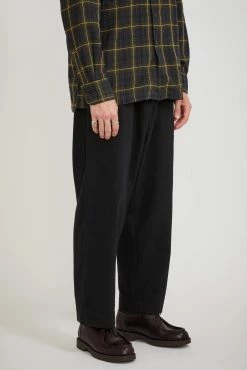 The Oxford Pants from Universal Works are a wide loose pant with the look of a straight leg, but actually have a slight taper in towards the ankle. The winter twill fabric used is slightly denser than a classic cotton twill with a soft and dry hand feel. The elasticated waist is smartened up with belt loops and a button closure as well as two front pleats to flatten the shape along the waistline. Four pockets two at the side seam and two back button pockets, one flap and one welted.