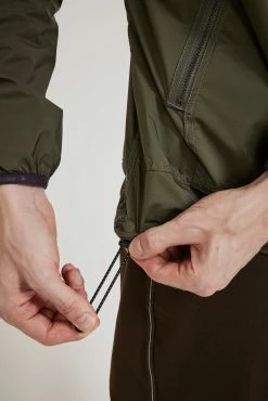 Pertex Quantum Air technology is a 20 denier high density nylon yarn which is windproof and water repellant but still has a good balance of breathability. Elastic cuffs and toggle closure on the hem and hood help keep wind out and reflective stitching details increase night time visibility. Two way zip closure on the front is internally covered for comfort and there are two front zip pockets for your gear.