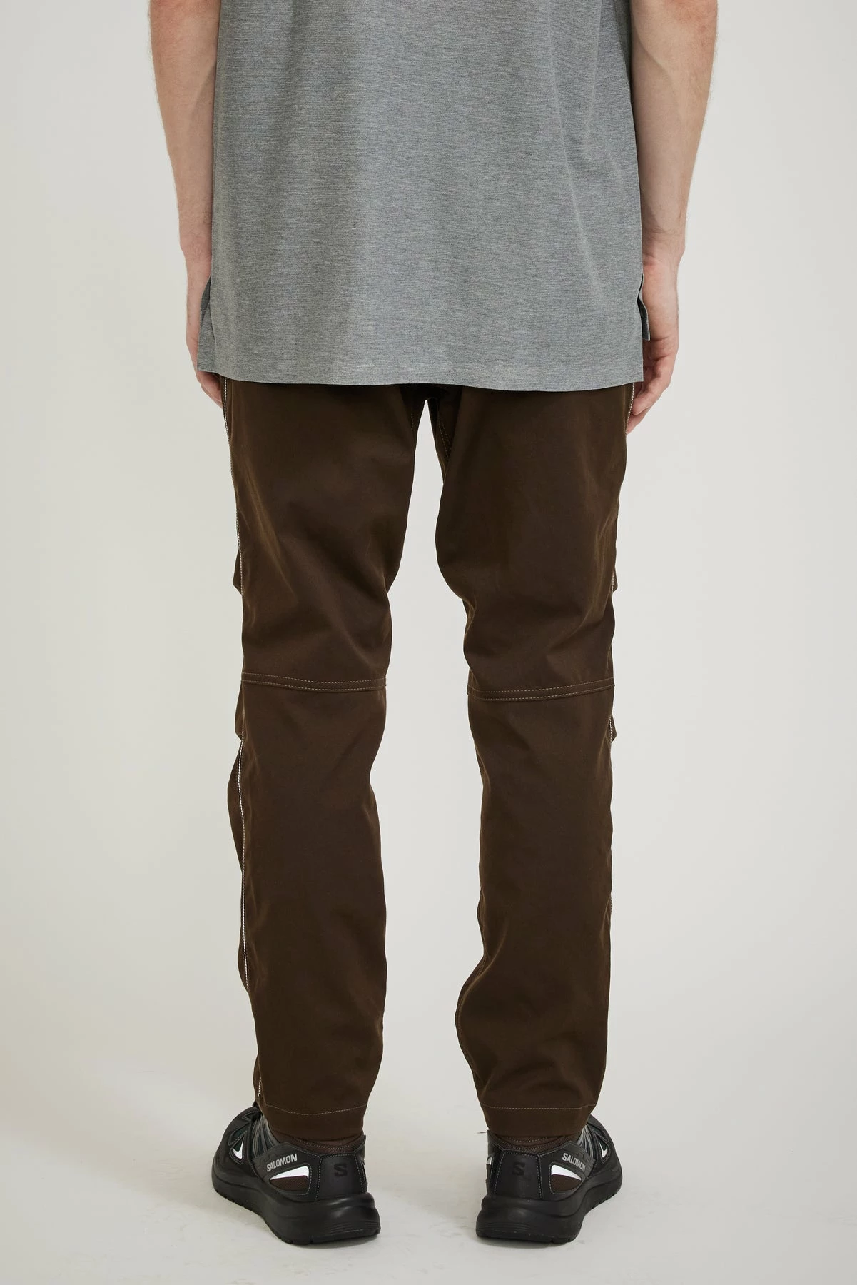 Constructed in a light and water-repellent polyester the cut is loose through the seat for movement, with a regular rise, zip and snap button closure and a slim tapered leg with elasticated toggle cuffs. They feature reflective stitching down the side of each leg for better visibility at night as well as a logo tape belt for attaching gear. Keep your goods safe with two snap closure back pockets as well as vertical side seam pockets with less chance of items falling out whilst still being open for easy access.