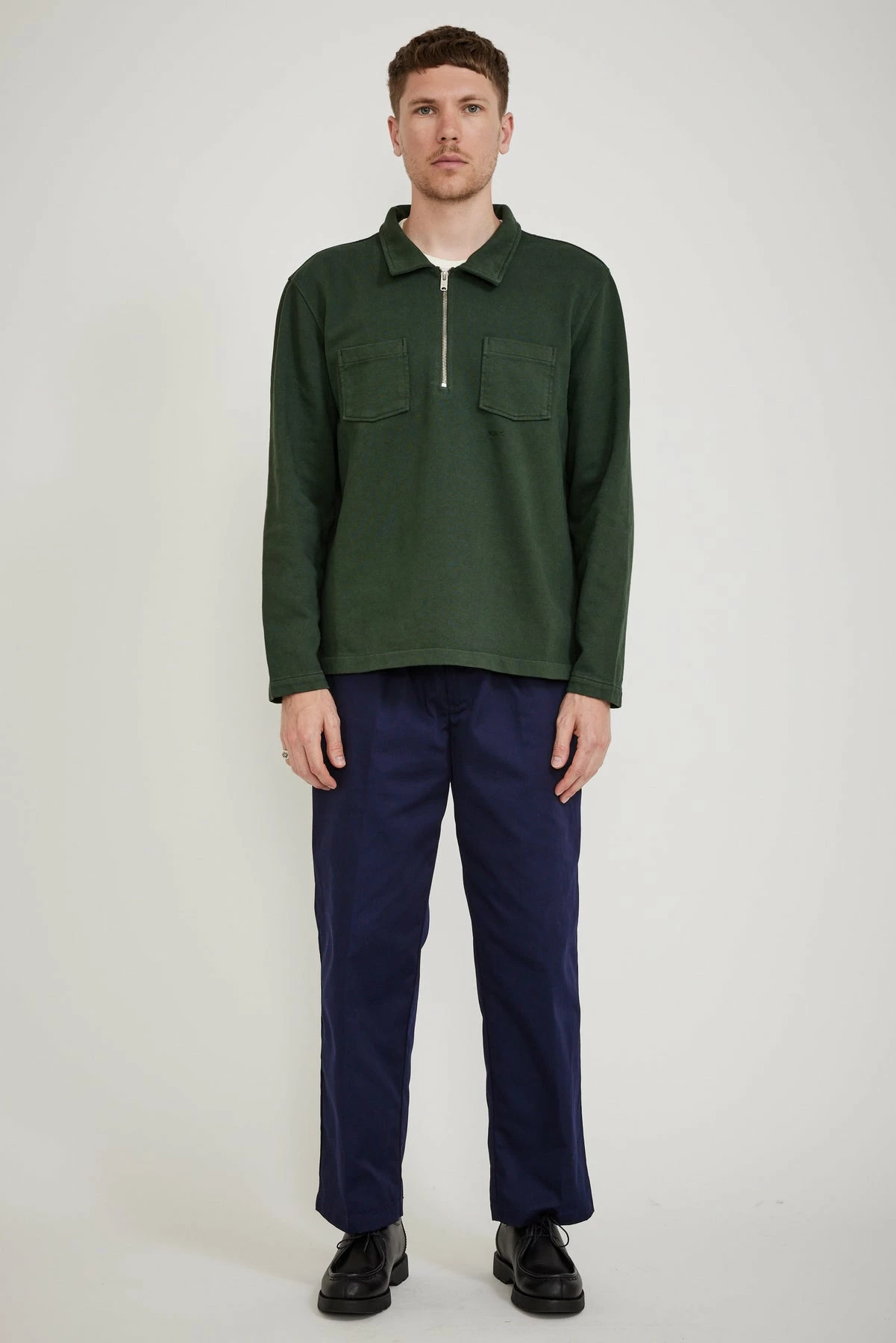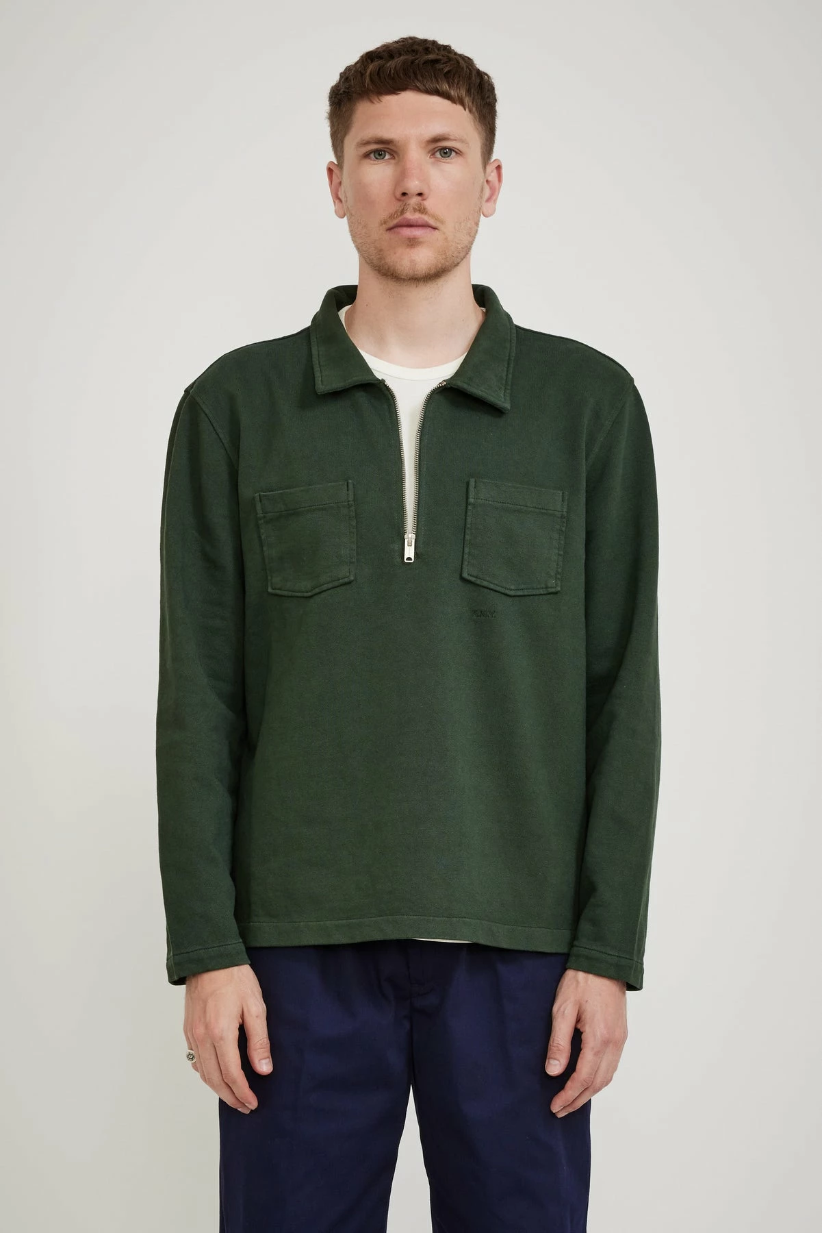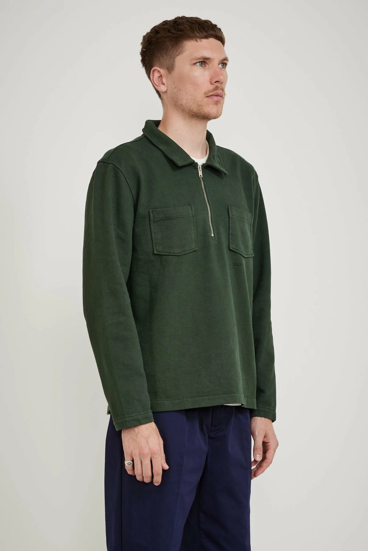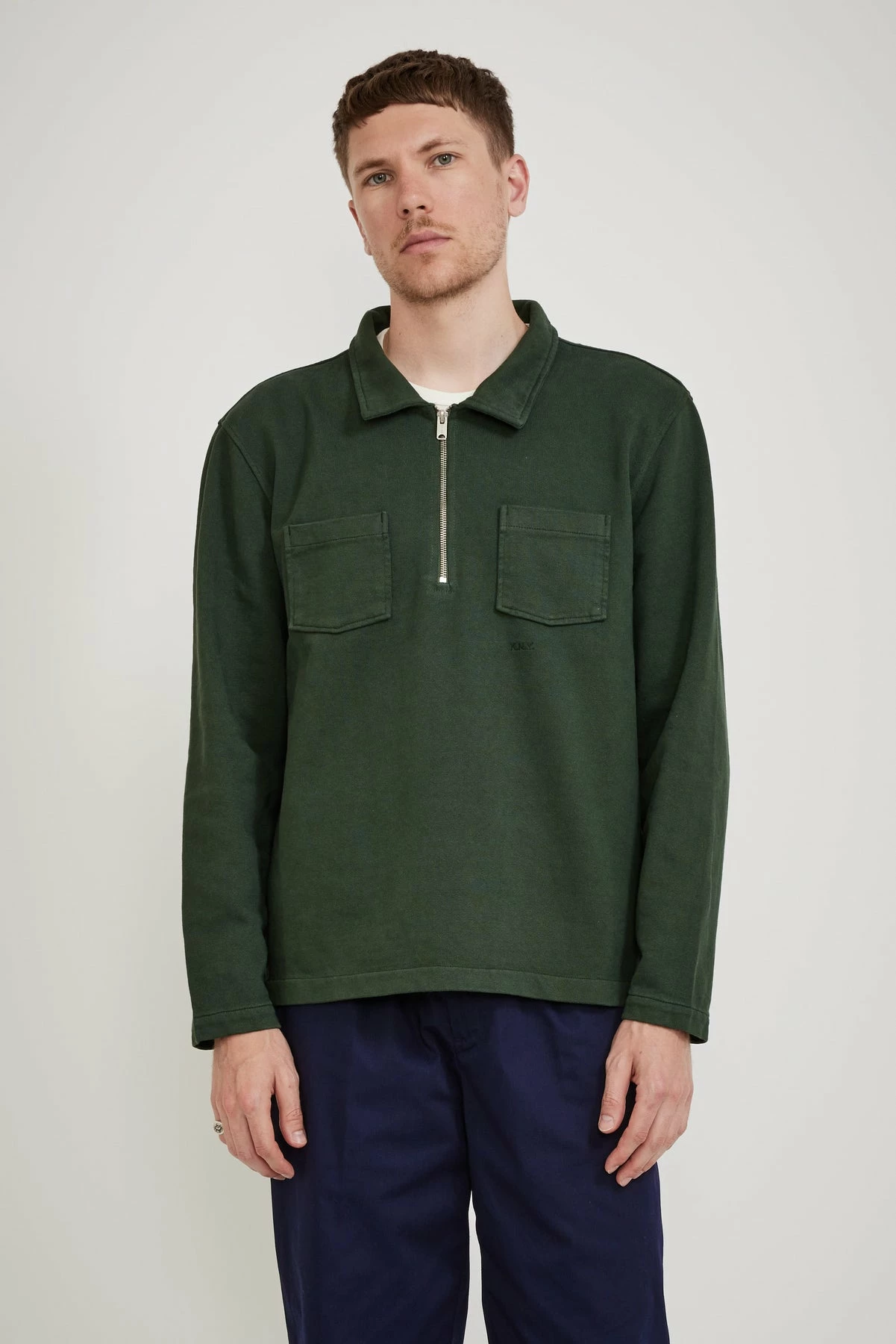 The Quarter Zip is back from Knickerbocker NYC, this season they’ve gone for a rich forest green, still in the classic mid-weight cotton fleece you’d expect to find on your favourite rugby shirt. Finished with a talon zipper and two chest pockets.