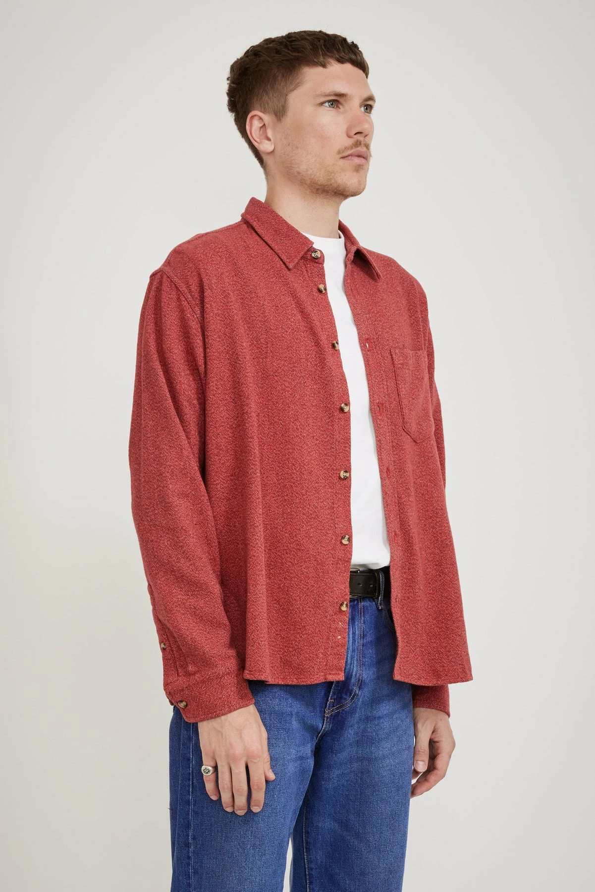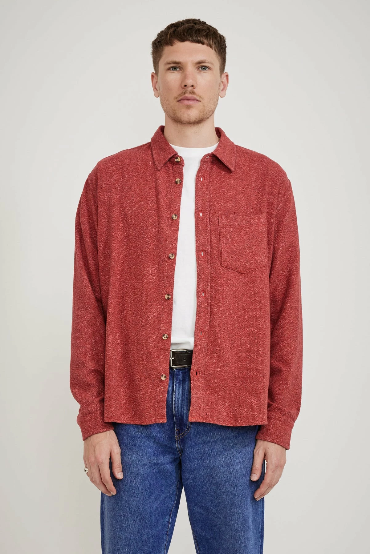Corridor have use recycled materials to create this new season colour in their classic flannel shirt. Constructed in their partner factory the brand ensure all of their garments are sustainably and ethically constructed. Woven with red, black and white thread for a mottled finish, mid-weight and ultra soft like all their shirting.