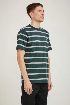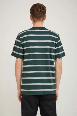 Cut from a light weight cotton jersey with some sharp stripes to break things up. Finished with an embroidered C to the chest, yarn dyed in a cool tone Juniper green for longer lasting colour.