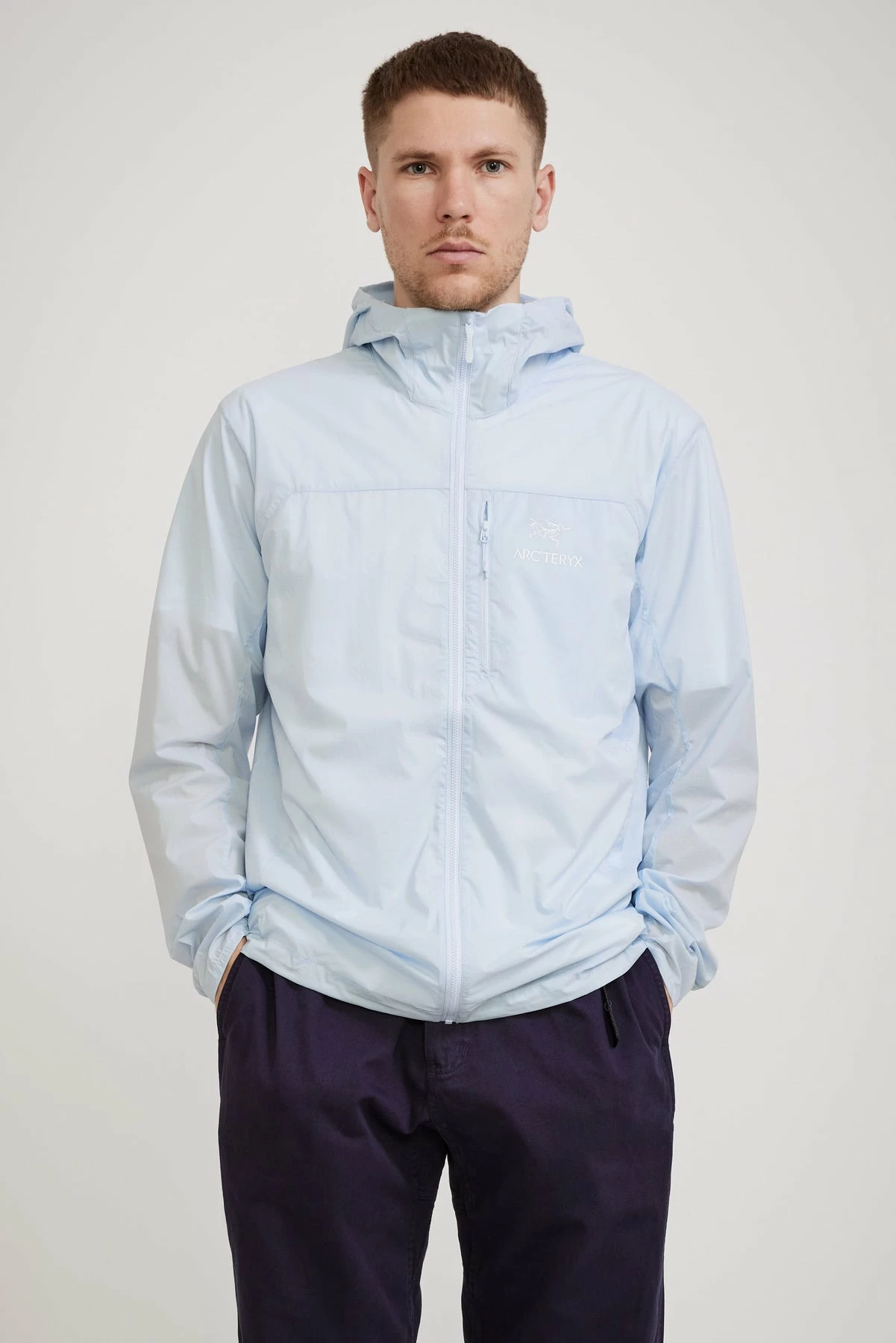 The Arcteryx Squamish is super light and highly wind resistant with a packability that makes it essential to have in your travel kit. Made with Tyono™ 30 nylon, an advanced, highly wind-resistant fabric that offers surprising strength for its weight, the Squamish Hoody features ultralight minimalist construction, and stows in its chest pocket so you can easily stash it in a pack or clip it to a harness.