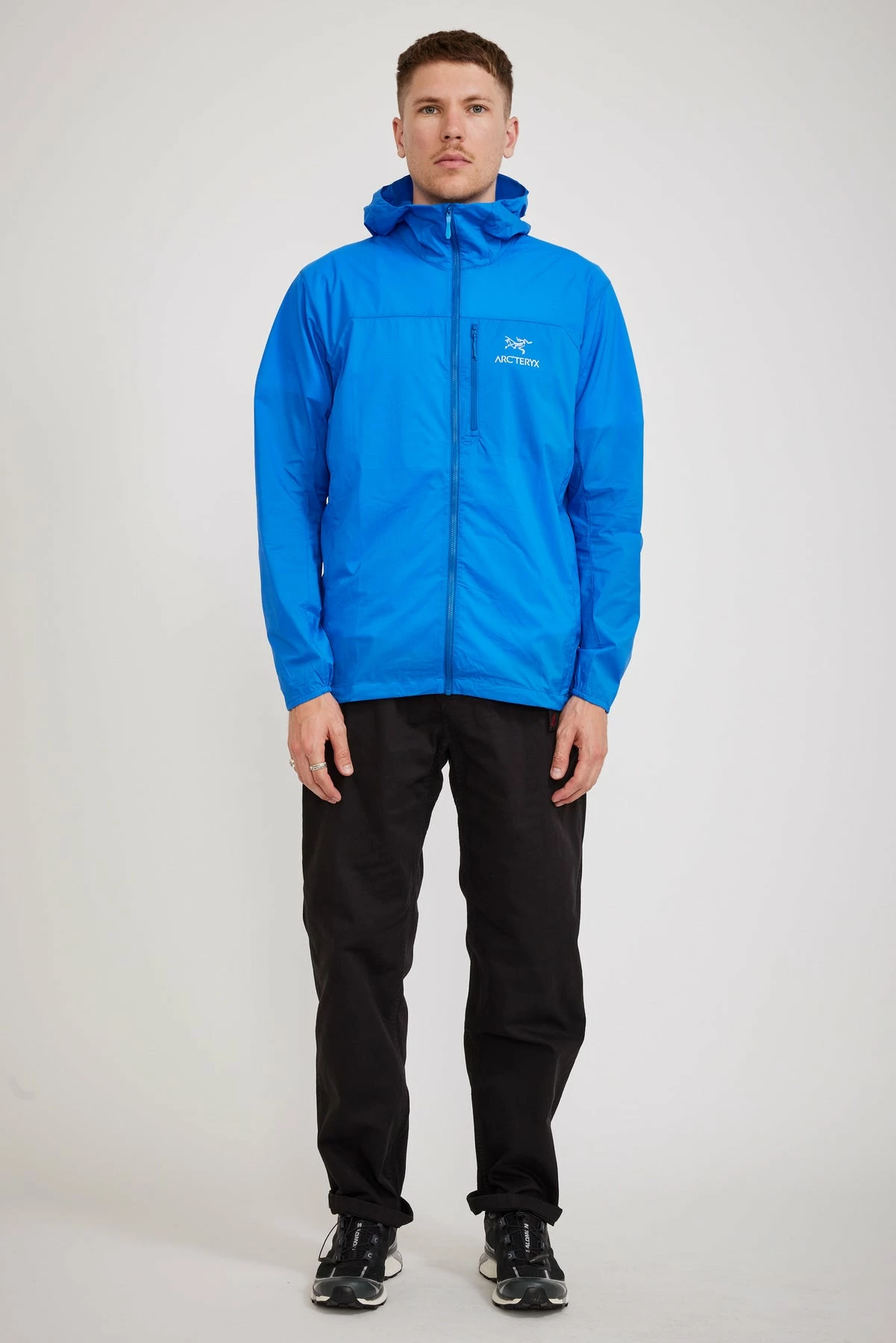 The Arcteryx Squamish is super light and highly wind resistant with a packability that makes it essential to have in your travel kit. Made with Tyono™ 30 nylon, an advanced, highly wind-resistant fabric that offers surprising strength for its weight. The Squamish Hoody features ultralight minimalist construction, and stows in its chest pocket so you can easily stash it in a pack or clip it to a harness.