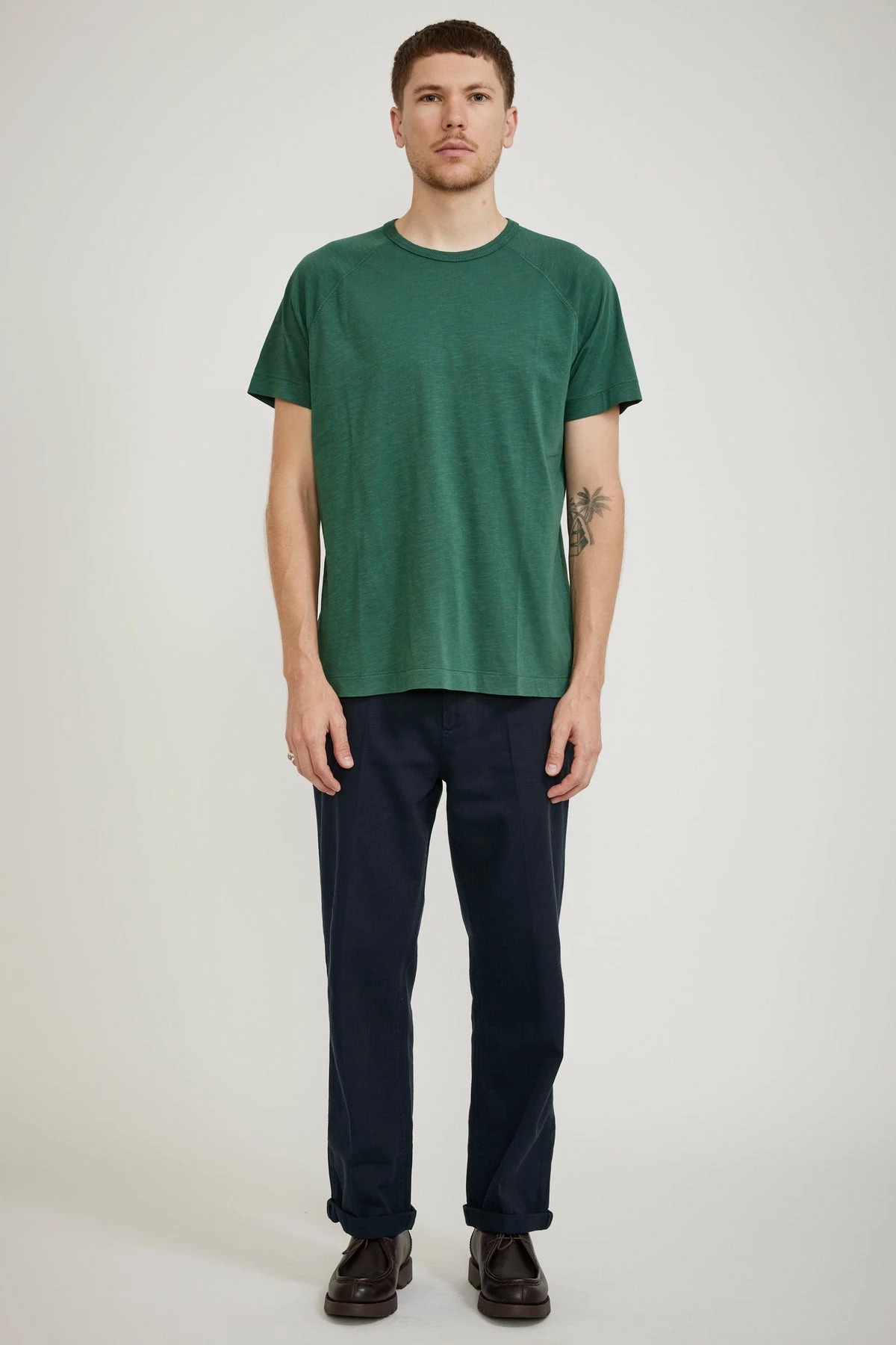 This light-weight slubbed cotton tee from YMC is all about the detailing. With raglan sleeves, a sweater style bound crew neckline and an all over garment dye to bring out the texture of the slub finish.