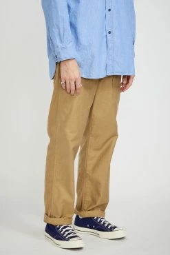 The orSlow original fit fatigue unisex pant offers the practicality of true military styling in a hardwearing 100% cotton sateen fabrication that improves with age. The classic original wider leg fatigue fit features side tab adjusters, front patch and rear button down flap pocketing with a button fly closure.