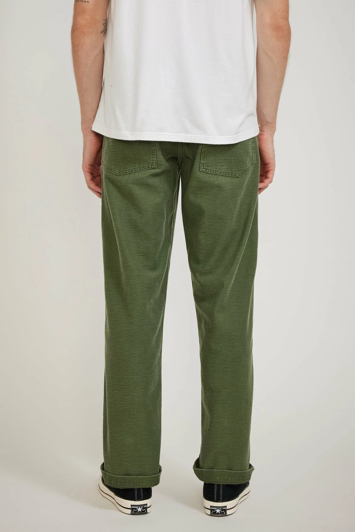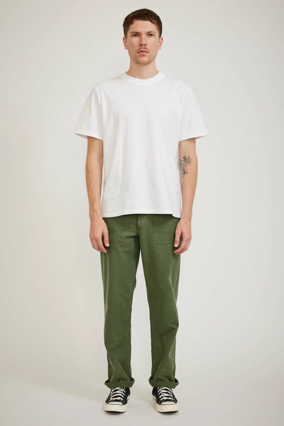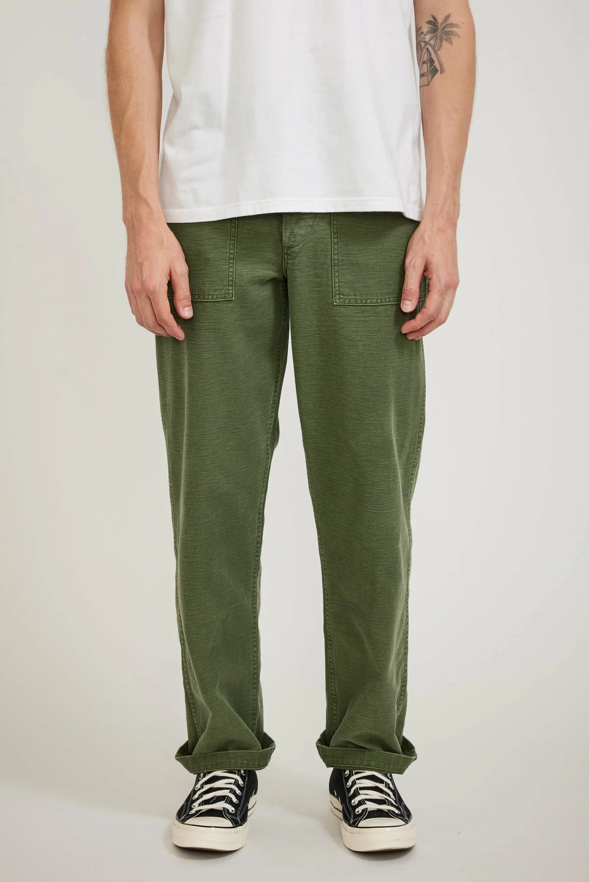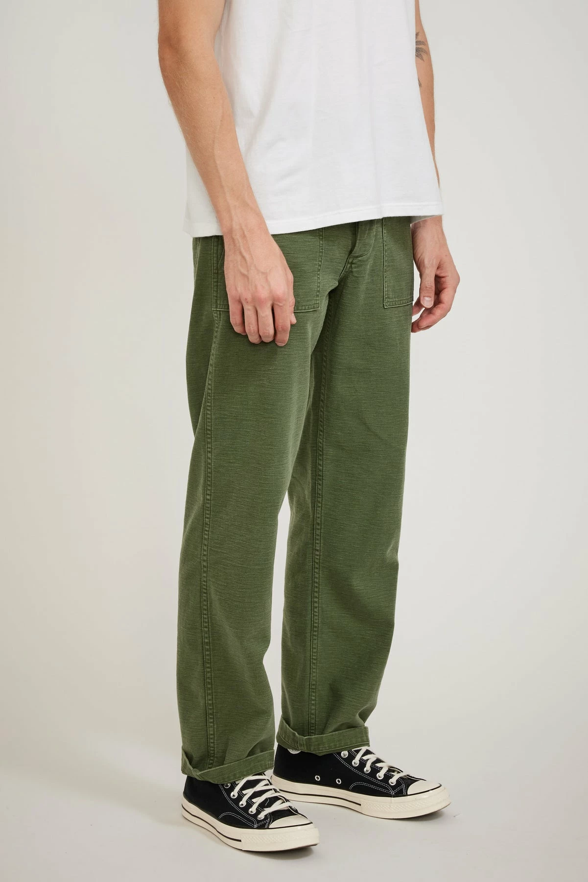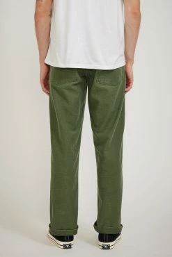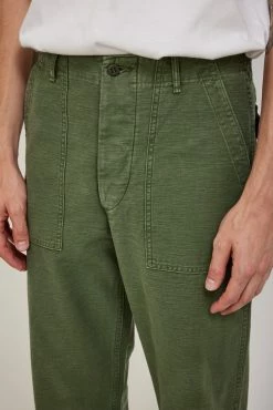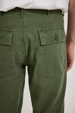 The orSlow original fit fatigue unisex pant offers the practicality of true military styling in a hardwearing 100% cotton sateen fabrication that been washed back for an in the know, worn in, “I’ve had them forever look”. The classic original wider leg fatigue fit features side tab adjusters, front patch and rear button down flap pocketing with a button fly closure.
