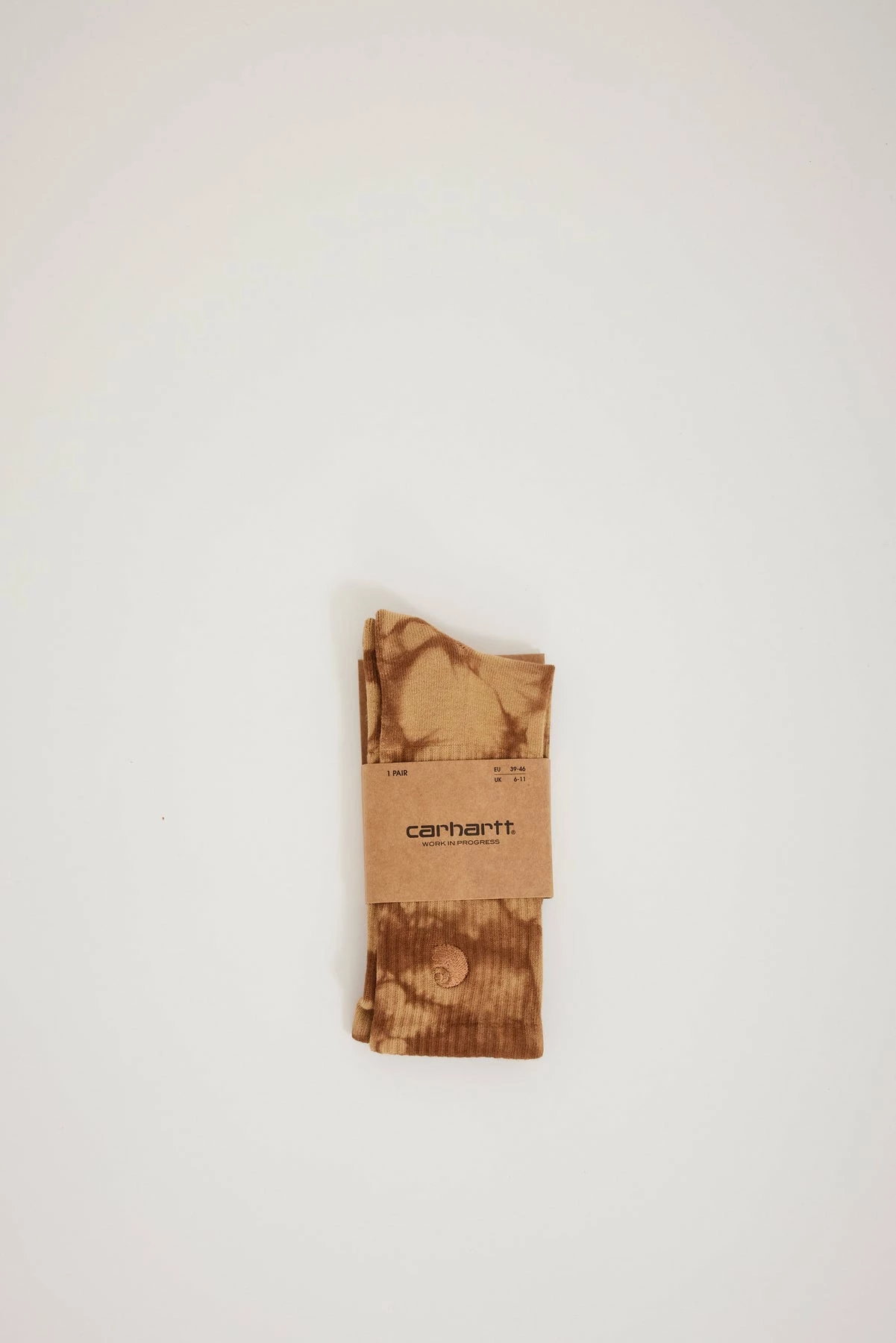 Carhartt’s Vista socks feature a tie dyed colour mix so each pair is unique, with ribbed cuffs, embroidered logo and a little bit of added stretch for comfort.