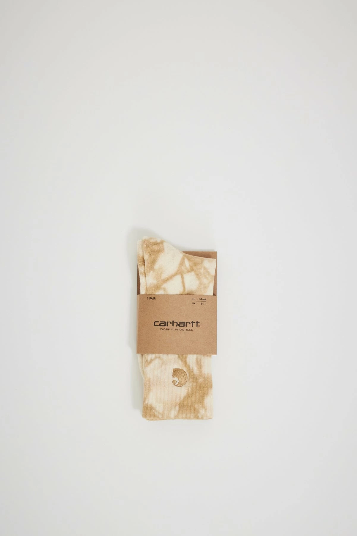 Carhartt’s Vista socks feature a tie dyed colour mix so each pair is unique, with ribbed cuffs, embroidered logo and a little bit of added stretch for comfort.